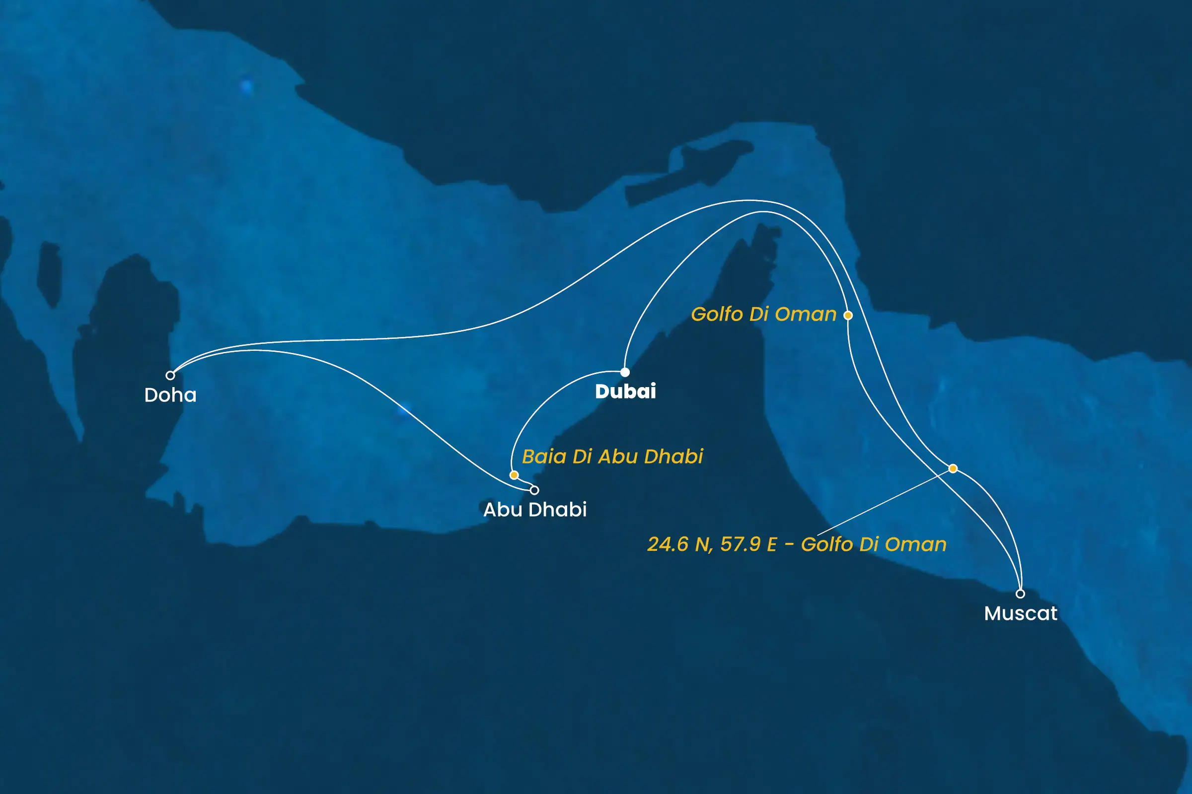 Mar 11 febbraio – Arrivo: 08:30 / Partenza: 19:00Il golfo dell’Oman è bellissimo e il porto con la città di Muscat riflettono la potenza economica del sultanato.Giorno 4 – 24.6 N, 57.9 E – Golfo di Oman: “Mare di stelle”