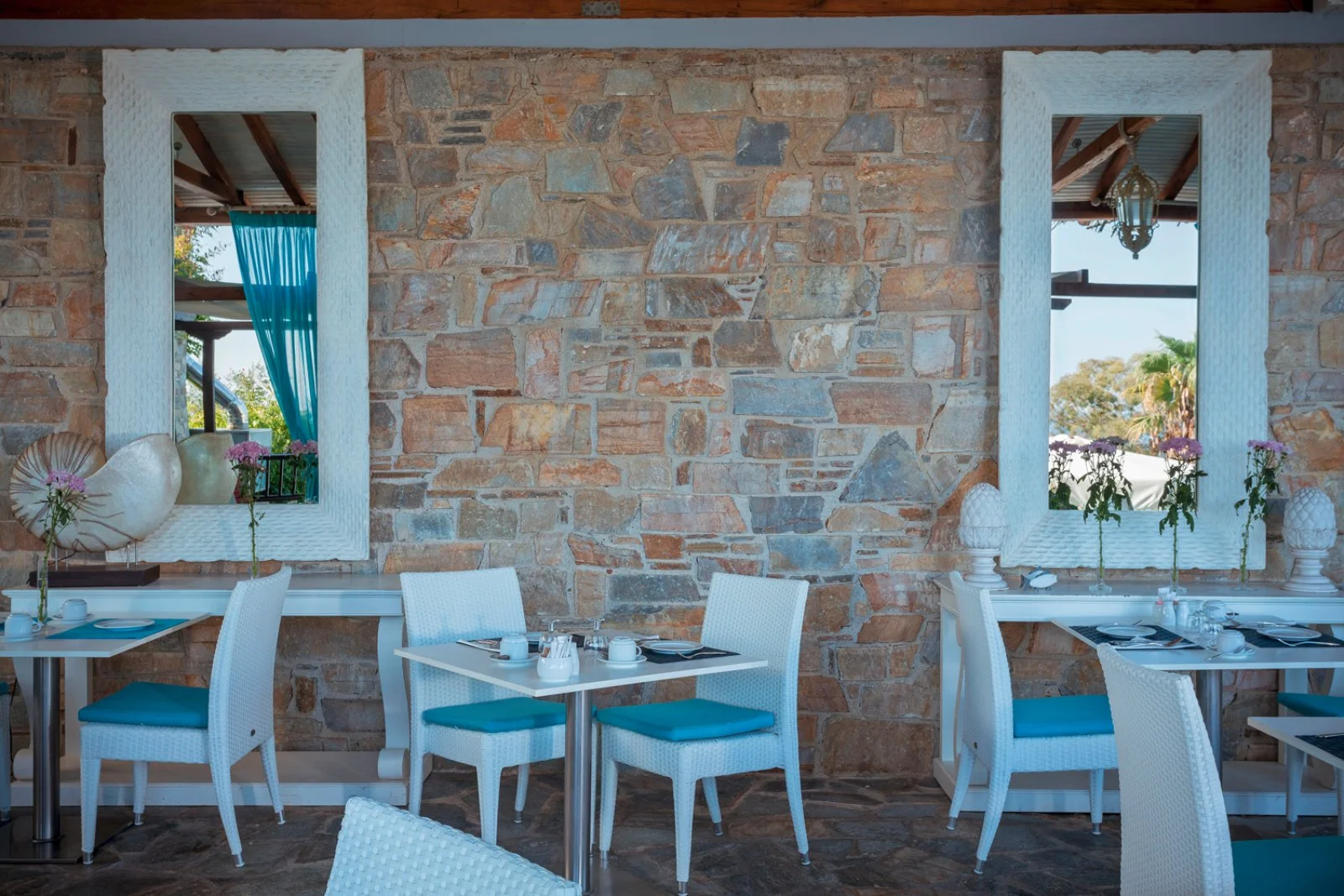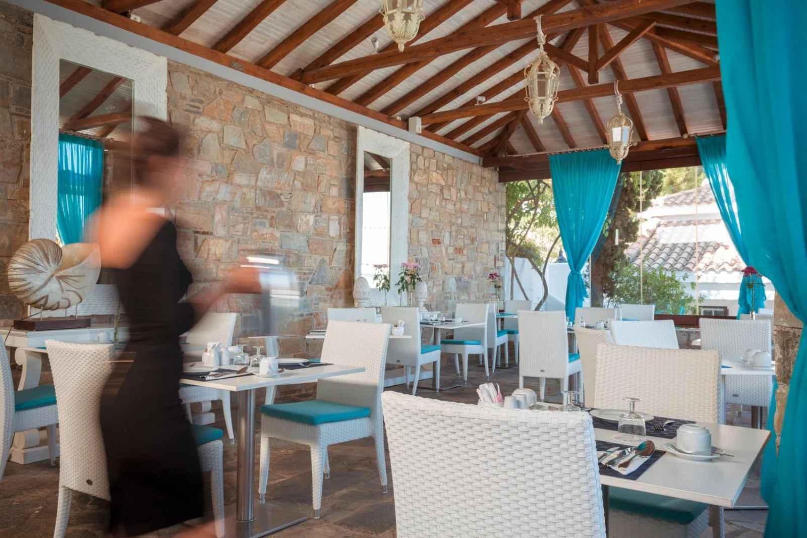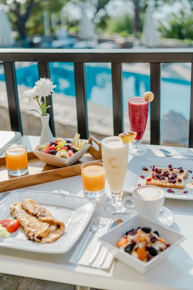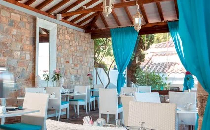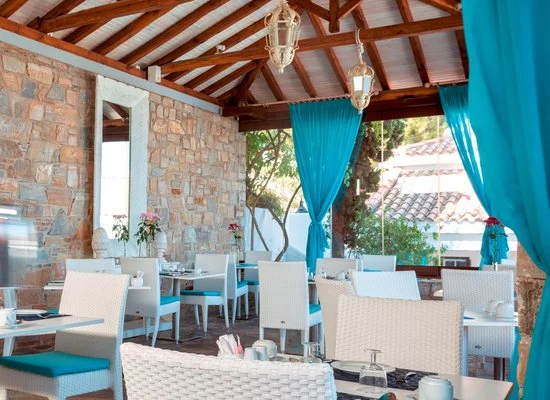 Il ristorante principale Pelagos propone la prima colazione con servizio à la carte, inoltre, viene servita anche la cena con una raffinata selezione di vini, invece il ristorante Karavia, vicino alla piscina, è aperto per il pranzo, entrambi sono a pagamento (eccetto per chi sceglie la Formula all inclusive, vedi dettagli nel relativo box). I bar sono due, di cui uno a bordo piscina.