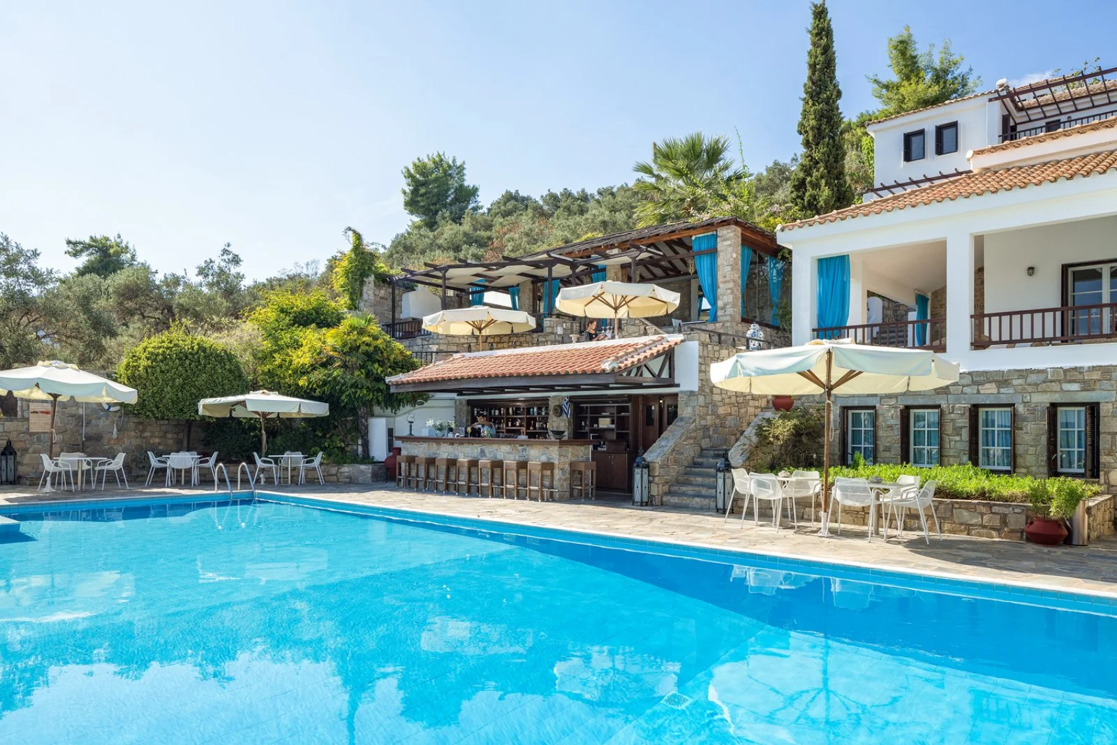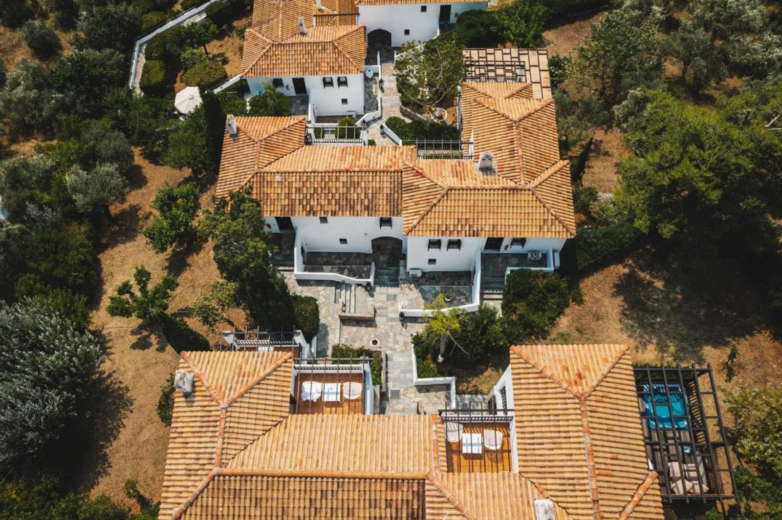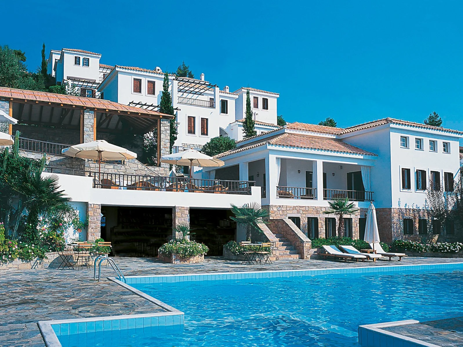 Costruito a terrazze su di una piccola collina in posizione panoramica e immerso nel verde, è un connubio tra ambienti curati e raffinati ed architettura classica e tradizionale