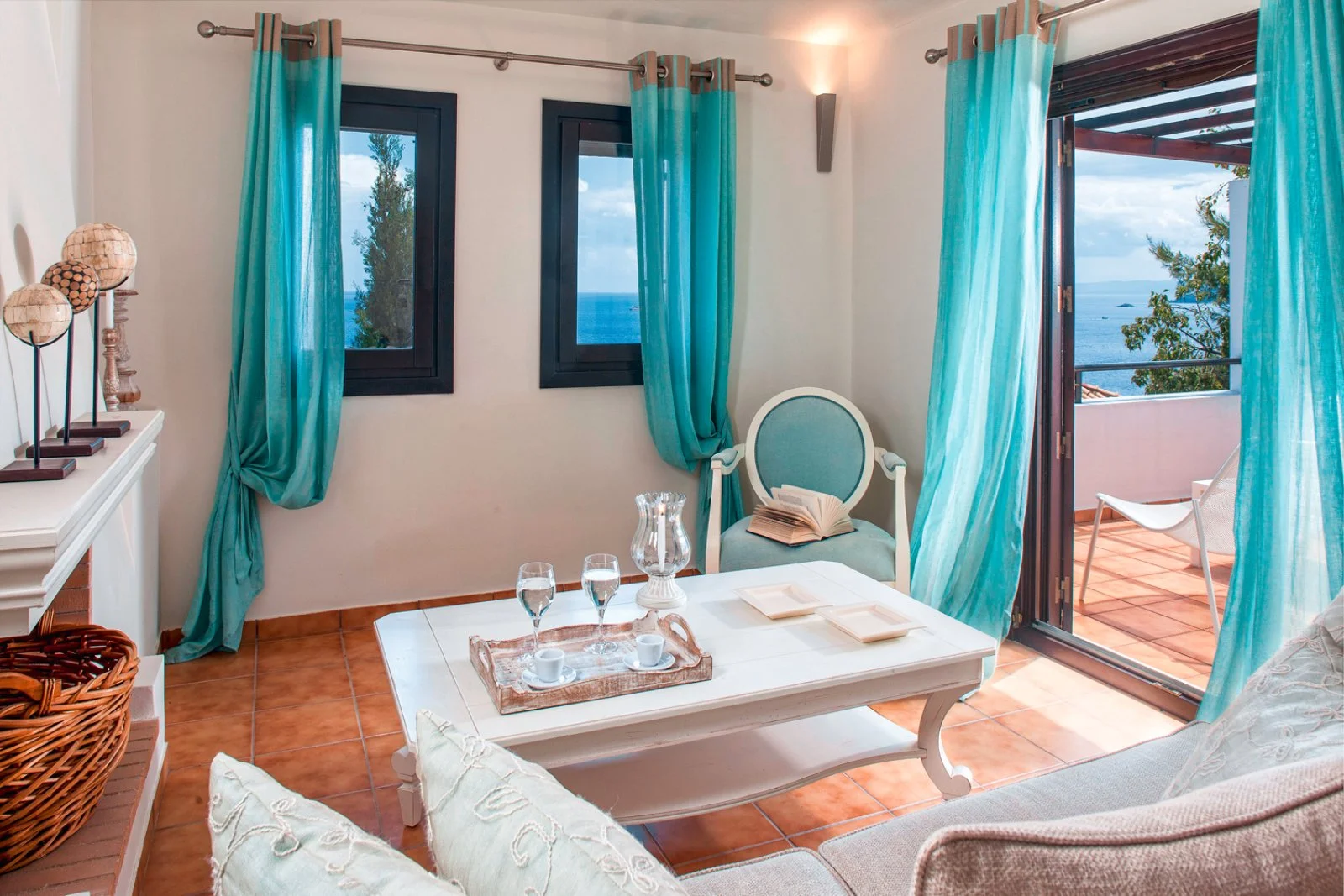 È costituito da 4 edifici su diversi livelli, collegati da scalinate, che ospitano le 22 eleganti e moderne suite con vista giardino o vista mare e alcune con vasca idromassaggio. Tutte le suite hanno un bagno lussuoso, camera da letto, piccolo soggiorno, terrazza e dispongono dei maggiori comfort, tra i quali minibar, TV, aria condizionata, asciugacapelli, cassetta di sicurezza, telefono.