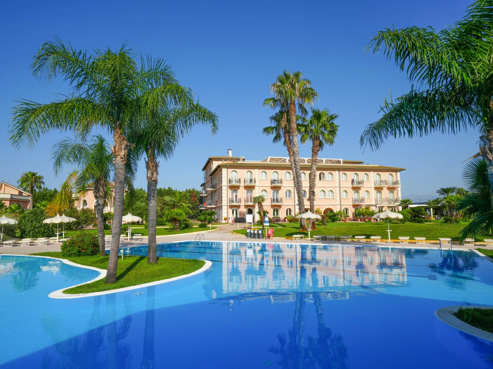 120 camere dislocate tra il corpo centrale e 8 villette indipendenti ognuna con 8 camere a piano terra con patio o ai piani superiori con balcone. Tutte le camere sono arredate in stile moderno con letti extra comfort king size e dotate di minifrigo, cassaforte, TV satellitare, area condizionata regolabile autonomamente e servizi privati con doccia e asciugacapelli. Nel corpo centrale, dotato di ascensore, sono distribuite le camere classic (25 m2, massimo 2 persone), alcune con balcone; camere standard (da 24 a 26 m2, massimo 3 persone) con 3° posto letto in pouf; family (da 45 a 47 m2, massimo 4 persone), composte da 2 ambienti con 1 unico ingresso e 1 bagno, tutte con balcone; junior suite (da 45 a 47 m2, massimo 5 persone), con balcone vista piscina, area soggiorno e camera da letto, 3°/4° letto in pouf. Nelle villette si trovano le camere special (29 m2, massimo 4 persone), 3° letto in pouf - 3°/4° letto in camere quadruple in poltrona letto a castello.