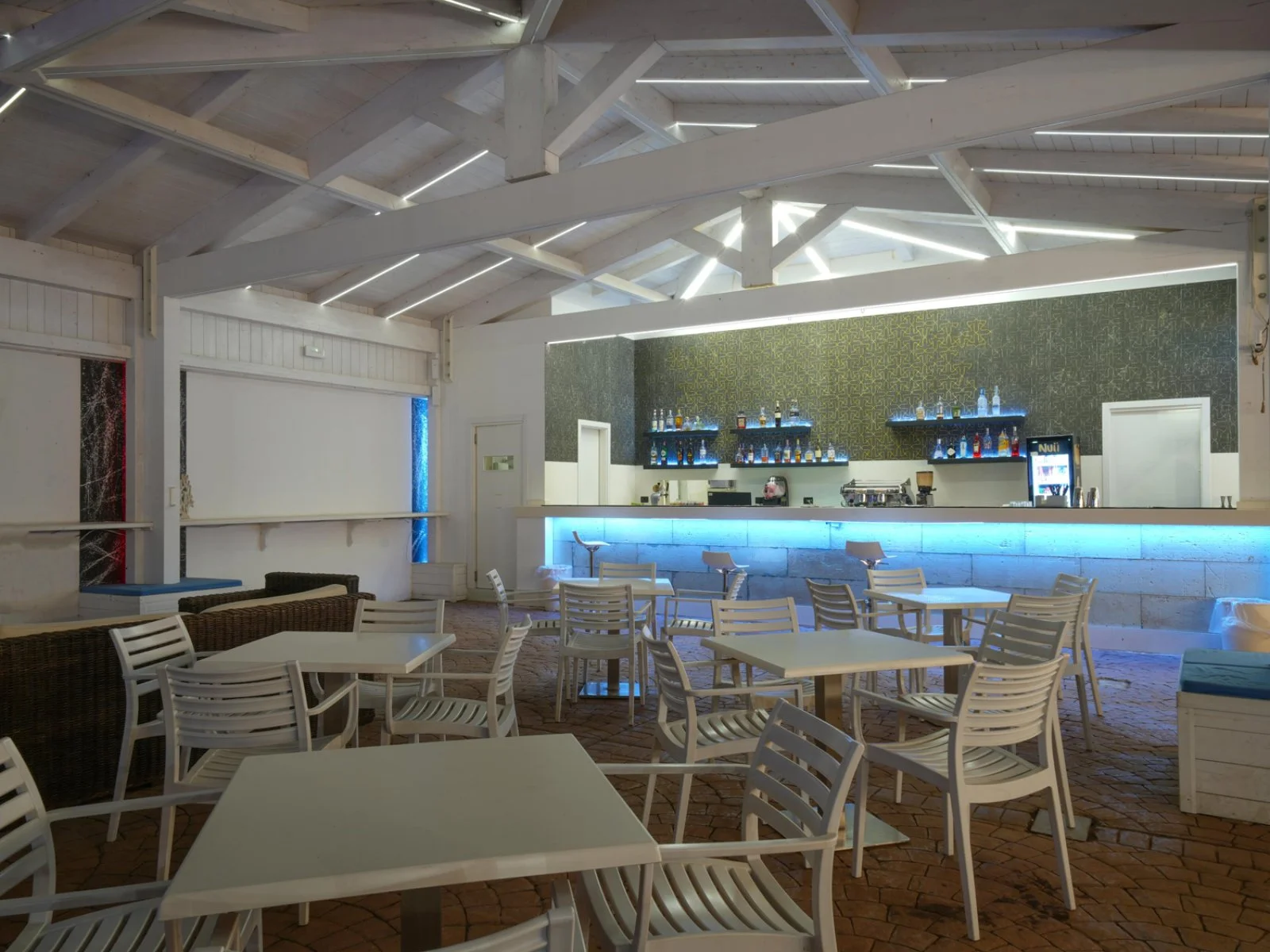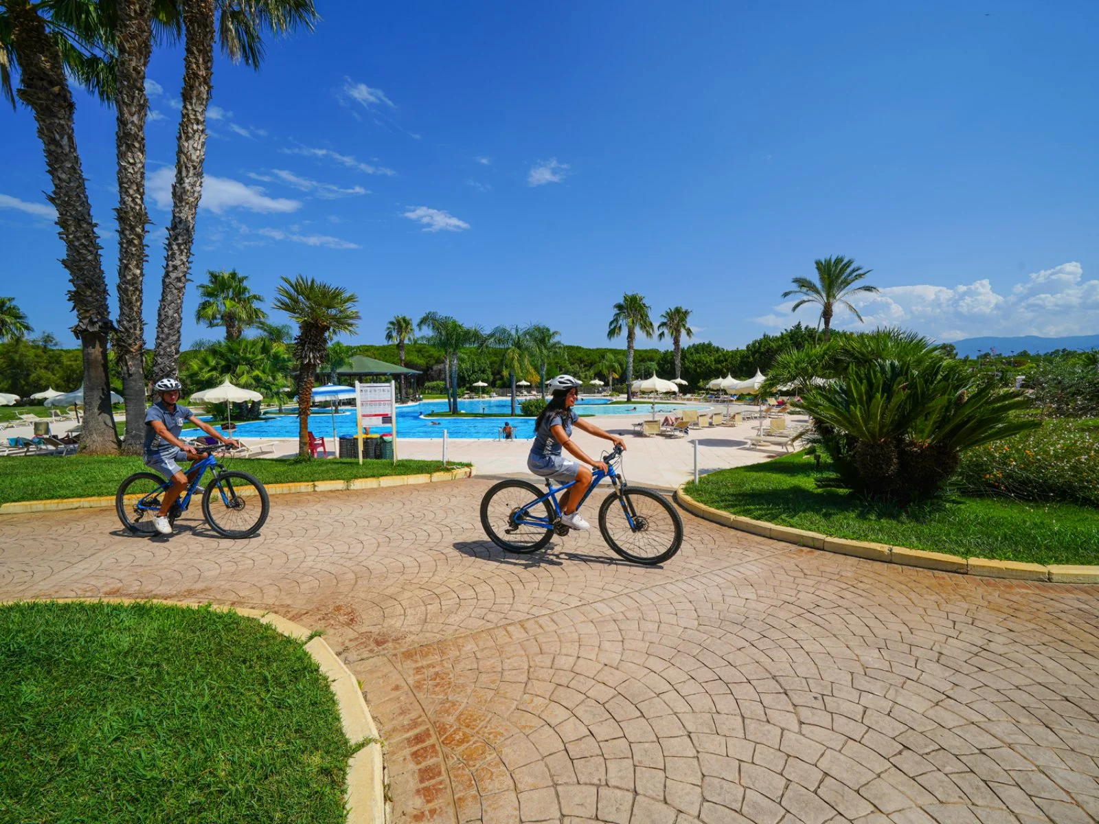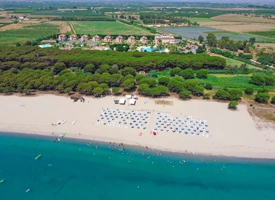 L’ampia spiaggia privata dista solo 150 m dal resort ed è raggiungibile percorrendo un camminamento che attraversa la rigogliosa pineta interna alla struttura; spiaggia riservata e attrezzata con 1 ombrellone e 2 lettini a camera dalla 2ª fila (1ª fila disponibile per gli ospiti che acquistano il pacchetto prestige plus). 1 grande piscina lagunare con zona idrobike e 1 piscina per bambini nell’area miniclub.