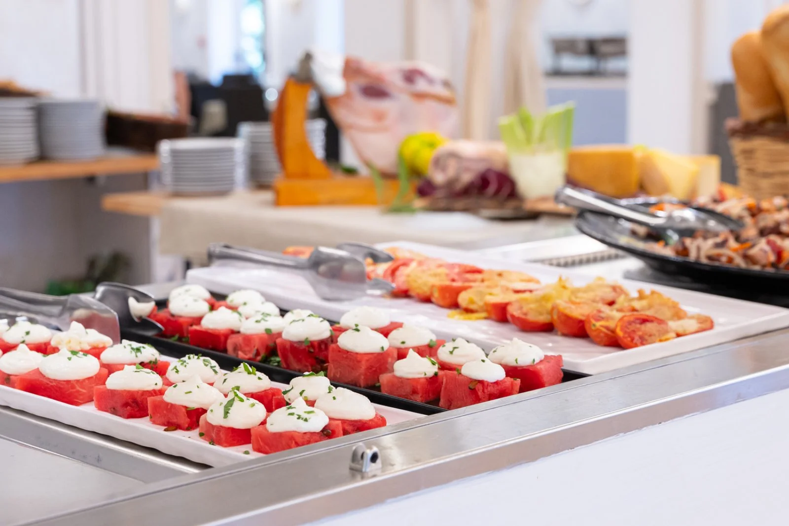 La formula tutto incluso soft comprende colazione, pranzo e cena con servizio a buffet presso il ristorante principale con sala interna climatizzata e splendida veranda all'aperto. La proposta culinaria offre specialità della cucina mediterranea e della tradizione tipica locale e regionale, serate a tema e show cooking. In alternativa, solo la sera e su prenotazione, pizzeria, che offre menù pizza, antipasti e dolce e 1 bevanda inclusa tra quelle previste nel trattamento tutto incluso soft. Sono inclusi ai pasti acqua, vino della casa, soft-drink e birra. A disposizione delle mamme che vogliono cucinare per i propri bimbi, all’interno del ristorante, è disponibile una biberoneria, h24 con assistenza negli orari dei pasti principali, corredata di piastre elettriche, frigo, lavabo, pentole, stoviglie, scaldabiberon e forno a microonde. 4 bar, di cui 1 in spiaggia e 1 nella zona della piscina. La formula tutto incluso soft, che prevede consumo illimitato di acqua, soft-drink, succhi, caffetteria espressa (sono esclusi vino, birra, alcolici, gelati, tutte le bevande in bottiglia e lattina), è prevista dalle 10 alle 24 alternativamente nei bar in spiaggia, nei pressi della piscina o della lobby, appuntamenti snack dolci/salati durante il giorno.