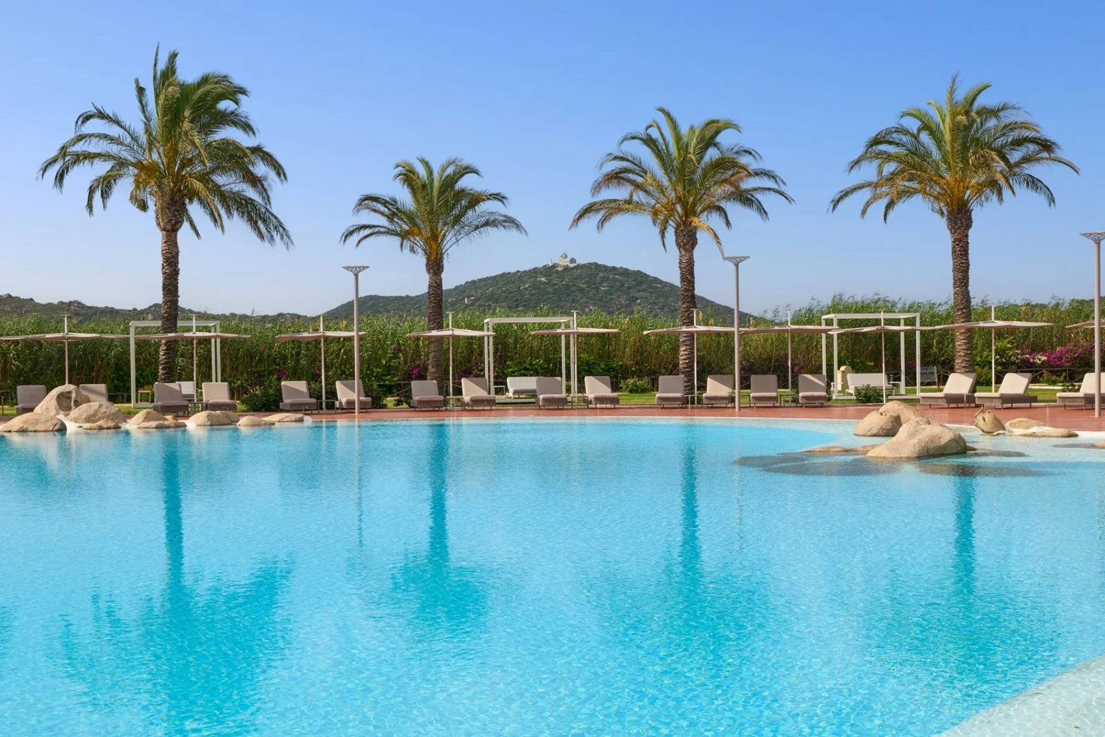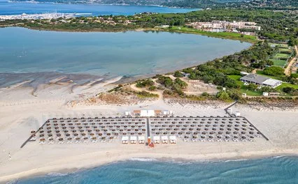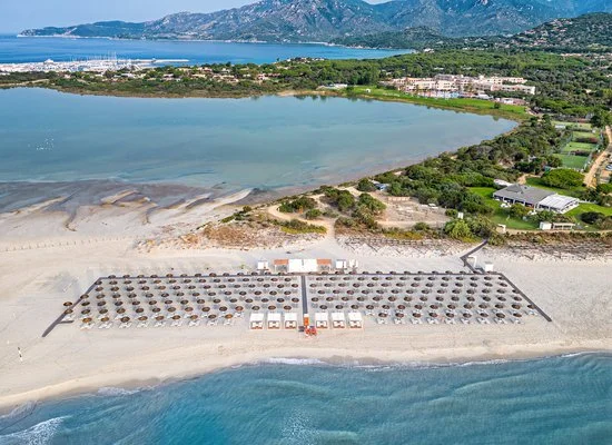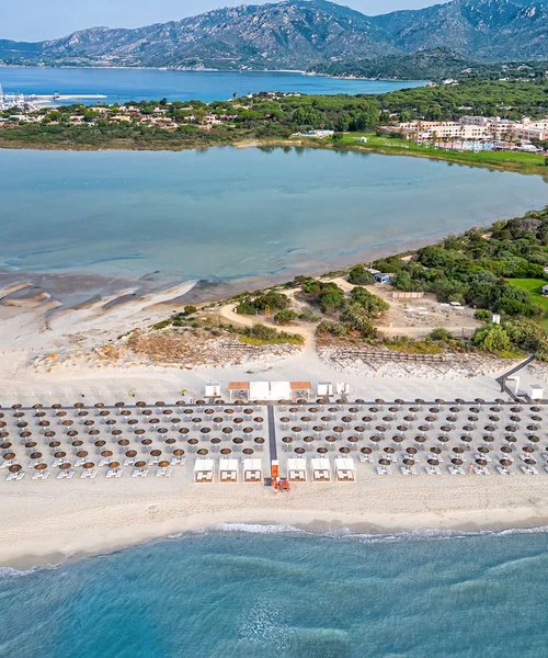 Spiaggia privata a 500 m, raggiungibile a piedi percorrendo un vialetto interno o con trenino elettrico, arenile di sabbia bianca, accesso digradante al mare, attrezzata con lettini e ombrelloni inclusi dalla 3a fila, teli mare inclusi. 1a e 2a fila su richiesta e a pagamento ed inclusa solo per gli ospiti delle Suite prestige lato baia e lato laguna. Piscina di acqua dolce, all'aperto di 800 m2, non riscaldata, con solarium attrezzato, lettini e ombrelloni a disposizione fino a esaurimento.