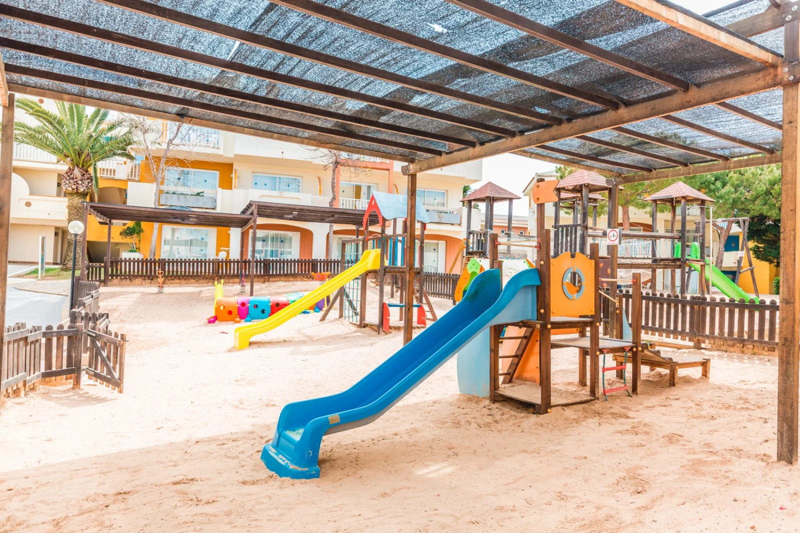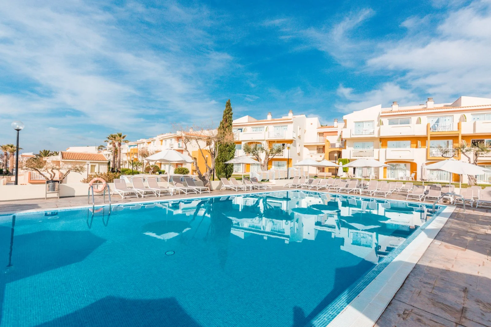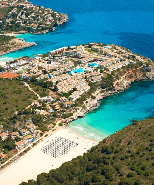 Le spiagge sabbiose di Cala Mandia e Cala Estany, alle quali si accede attraverso un sentiero e scalini, distano circa 300 m raggiungibili (indicativamente da metà maggio a settembre), con un servizio di navetta gratuito ad orari fissi. Dispone di 2 piscine con zona separata per bambini, una piscina situata presso la zona più tranquilla delle junior suite, una splash pool con galeone dei pirati, scivoli e giochi d’acqua per il divertimento di bambini e teenager (altezza minima 120 cm). Utilizzo gratuito di ombrelloni, lettini e teli mare (sostituzione a pagamento) presso le piscine.
