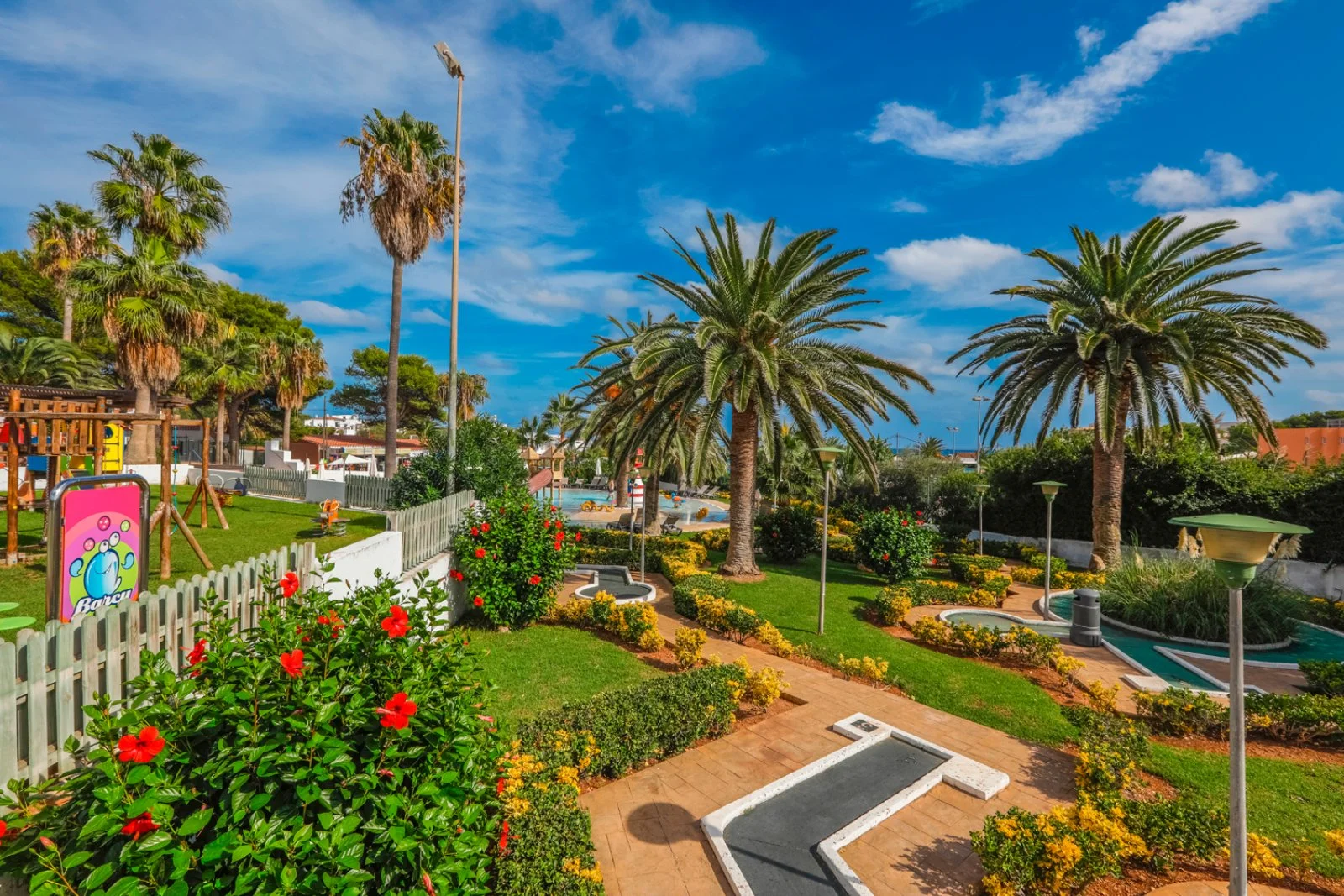 A circa 5 km da San Luis, pittoresco paesino situato all’estremità meridionale di Minorca, a 10 km circa dalla capitale Mahon e a circa 13 km dall’aeroporto. È composto da un corpo centrale e da 9 blocchi di 4 piani che si sviluppano attorno alla zona piscina, circondati da giardini. La struttura è completata da una zona verde con angolo relax e da un’area sportiva che si estende verso la spiaggia.