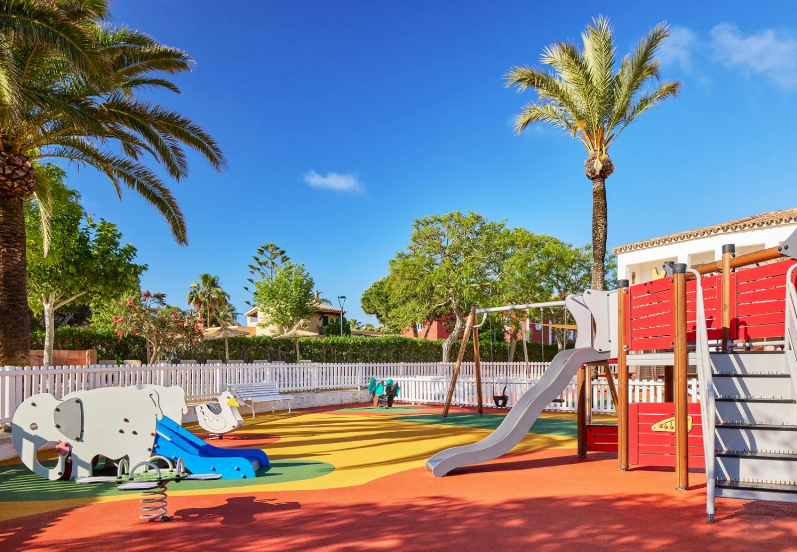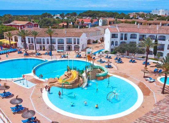 La spiaggia più vicina, quella di Son Xoriguer, si trova a soli 250 m dalla struttura, mentre quella di Cala’n Bosch è a circa 700 m. All’interno della struttura vi sono diverse piscine: quella principale, la piscina dove si svolgono anche attività tipo acqua spinning, lo Splash Park per la gioia dei più piccini e altre più piccole e tranquille, immerse nei giardini. Ombrelloni, lettini e teli mare (con cauzione) sono a disposizione degli ospiti presso le piscine.
