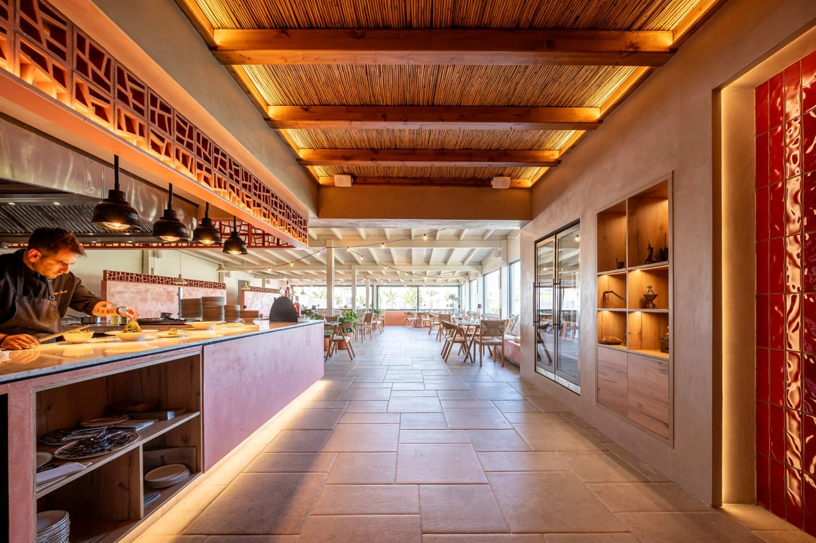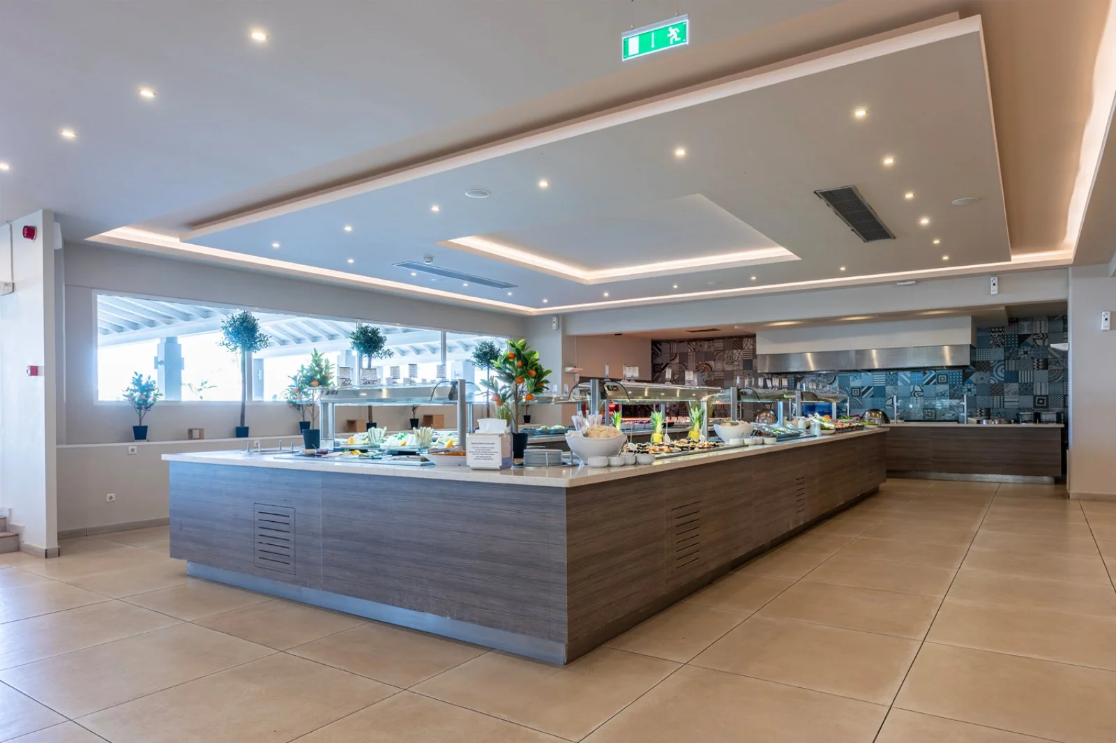 Il ristorante principale offre prima colazione, pranzo e cena con servizio a buffet, show cooking e settimanalmente varie cene tematiche. Inoltre, sono presenti cinque bar, di cui uno nei pressi della spiaggia che serve anche snack, due presso le piscine e un lounge bar. Completano l'offerta la taverna greca e il ristorante italiano, entrambi aperti per cena. Maggiori dettagli al paragrafo Formula tutto incluso ultra.