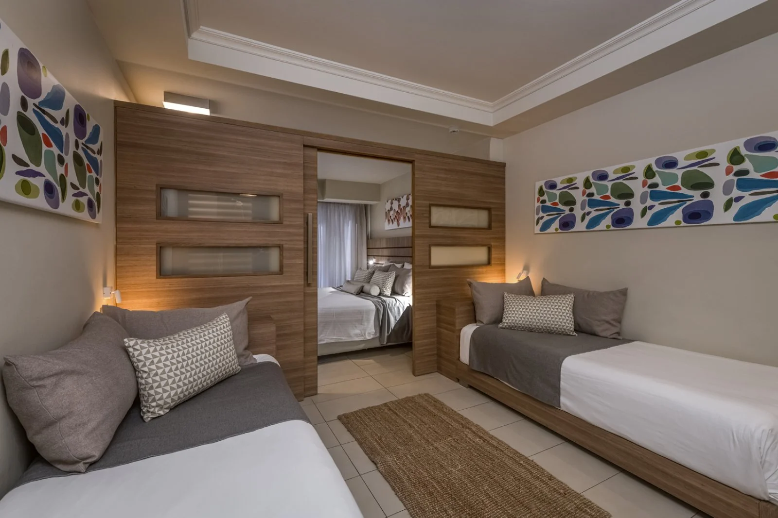 351, tutte dotate di servizi privati, asciugacapelli, telefono, TV satellitare, accesso internet Wi-Fi, aria condizionata con controllo individuale, minifrigo rifornito con una bottiglia di acqua minerale all’arrivo, set per tè e caffè, cassetta di sicurezza, balcone o terrazza. Il resort dispone di una gamma di sistemazioni molto variegata: le doppie vista giardino o con piscina condivisa e le più spaziose superior inland view ospitano fino a 3 adulti; le family con piscina condivisa o swim-up, entrambe suddivise in 2 ambienti da una porta scorrevole, le family vista giardino con due camere separate e le maisonette inland view su due piani, molto ampie, possono accogliere fino a 4 adulti. Le superior inland view dispongono, inoltre, di accappatoio, ciabattine e macchina per caffè espresso con rifornimento giornaliero di capsule. A pagamento: consumazioni minibar.
