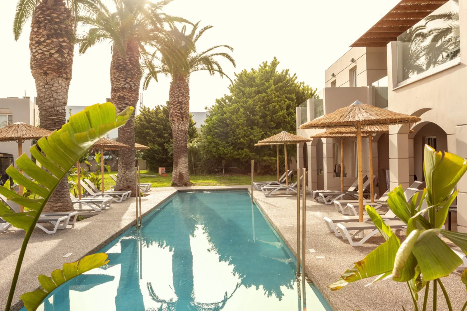 Sorge a circa 1 km dal centro della località turistica di Marmari e a 15 km dall’aeroporto e da Kos città. Fermata bus di linea a 50 m. Si compone di numerosi edifici a 2 piani dall’architettura lineare e pulita, distribuiti nel verde tra ordinati vialetti e intorno alle piscine. Gli interni sono in un molto piacevole stile contemporaneo con tocchi etnici e boho-chic.