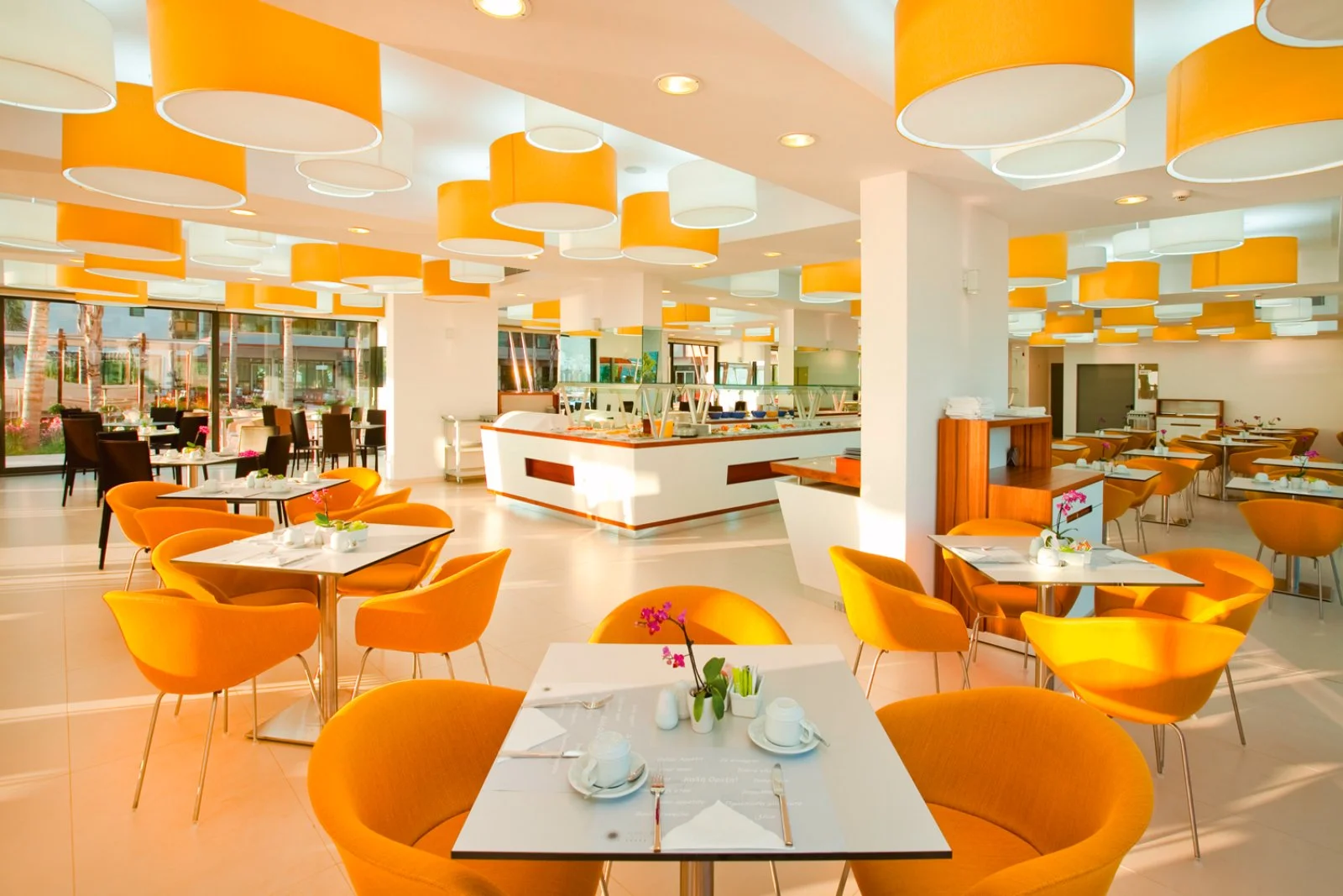 Ristorante principale con servizio a buffet, show cooking e settimanalmente varie cene tematiche. La formula mezza pensione prevede prima colazione e cena, mentre, per chi sceglie la pensione completa, oltre al pranzo, sono incluse le bevande a pranzo e a cena (1 bottiglia d’acqua, 1 soft-drink e 1 bicchiere di vino o 1 birra). Il pranzo è previsto allo snack bar con set menù di 3 portate (antipasto, piatto principale e frutta o dessert) a scelta tra più proposte. A pagamento: lobby bar e snack bar presso la piscina.