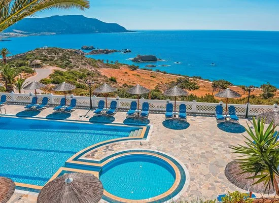 Quattro le spiagge raggiungibili con una breve passeggiata a piedi: le spiagge di ciottoli di Votsalakia e Kastelia distano circa 250 m mentre le famose e belle spiagge di Megali Amoopi e Mikri Amoopi, entrambe sabbiose, distano rispettivamente circa 250 e 350 m. L’hotel dispone di 2 piscine, di cui 1 per bambini. Uso di ombrelloni e lettini gratuito solo in piscina, teli mare non disponibili.