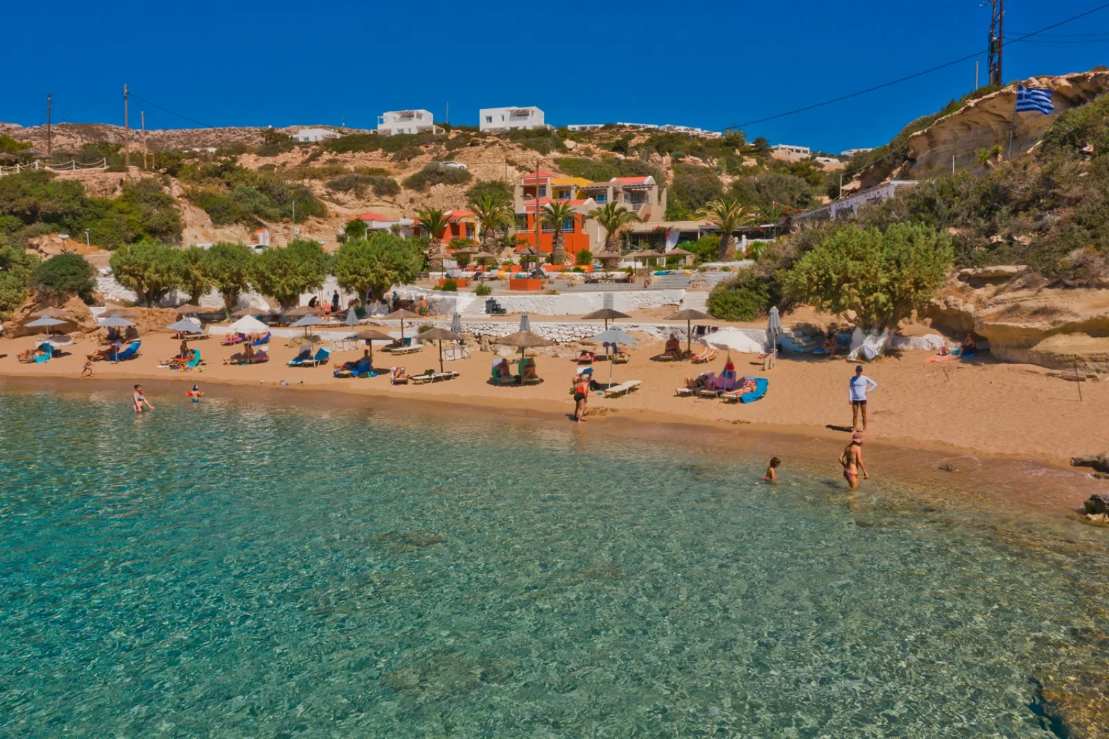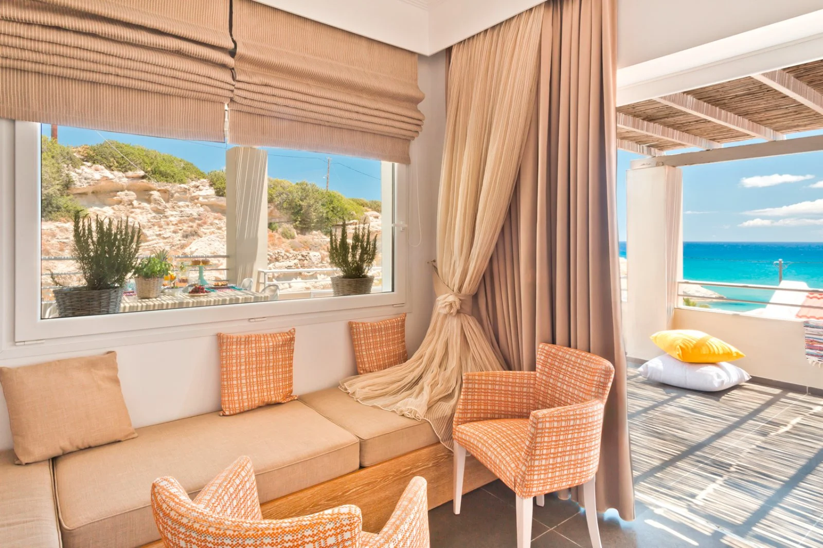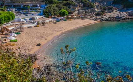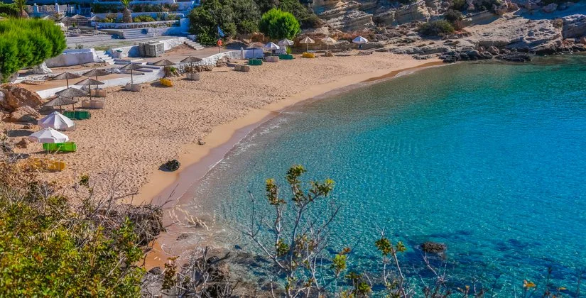La bellissima spiaggia sabbiosa di Mikri Amoopi, dalle acque cristalline e protetta dai venti, dista circa 10 m. A disposizione degli ospiti una deliziosa piscina a sfioro, situata a circa 150 m presso l’Amoopi Nymfes Royal appartenente alla stessa proprietà, che vanta una magnifica vista panoramica sulla baia. Uso di ombrelloni e lettini gratuito solo in piscina, teli mare disponibili su richiesta.