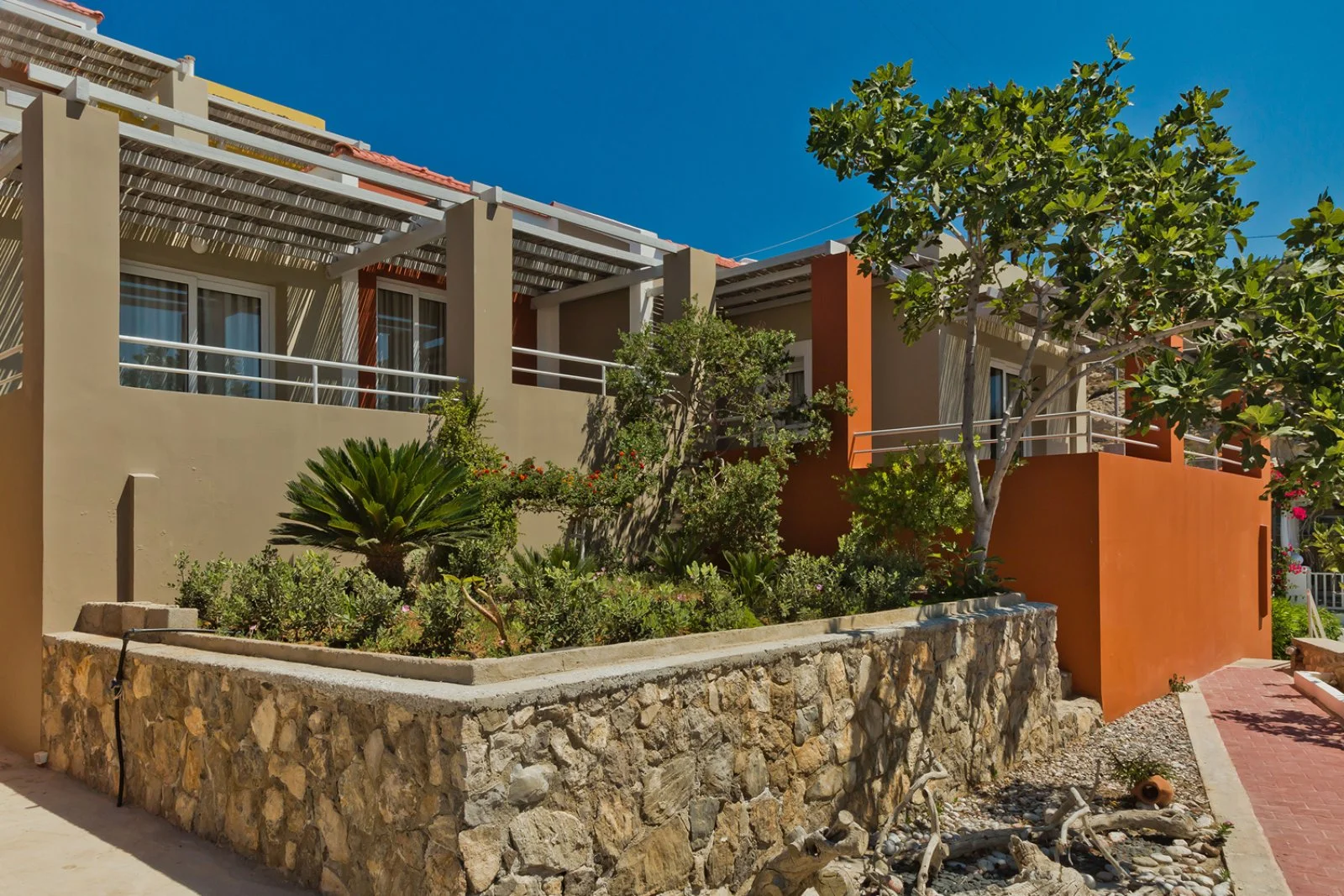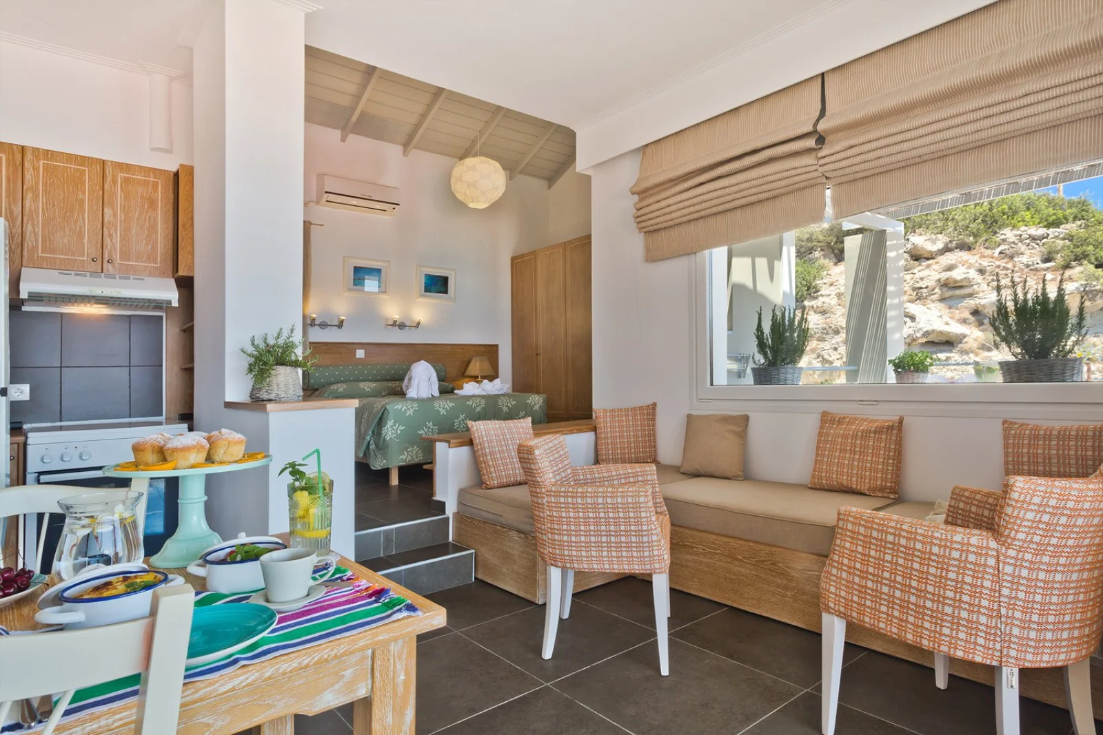 5 studio beach house in totale, funzionali e dotati di molti comfort, tutti vista mare e con ambiente unico. Possono ospitare fino a 2 adulti + 2 bambini o 3 adulti e sono dotati di servizi privati, asciugacapelli, TV satellitare, aria condizionata con controllo individuale, asse e ferro da stiro, frigo, angolo cottura attrezzato, accesso internet Wi-Fi, cassetta di sicurezza, balcone attrezzato. La pulizia è prevista 6 giorni a settimana, il cambio della biancheria da bagno e da letto ogni 2 giorni.