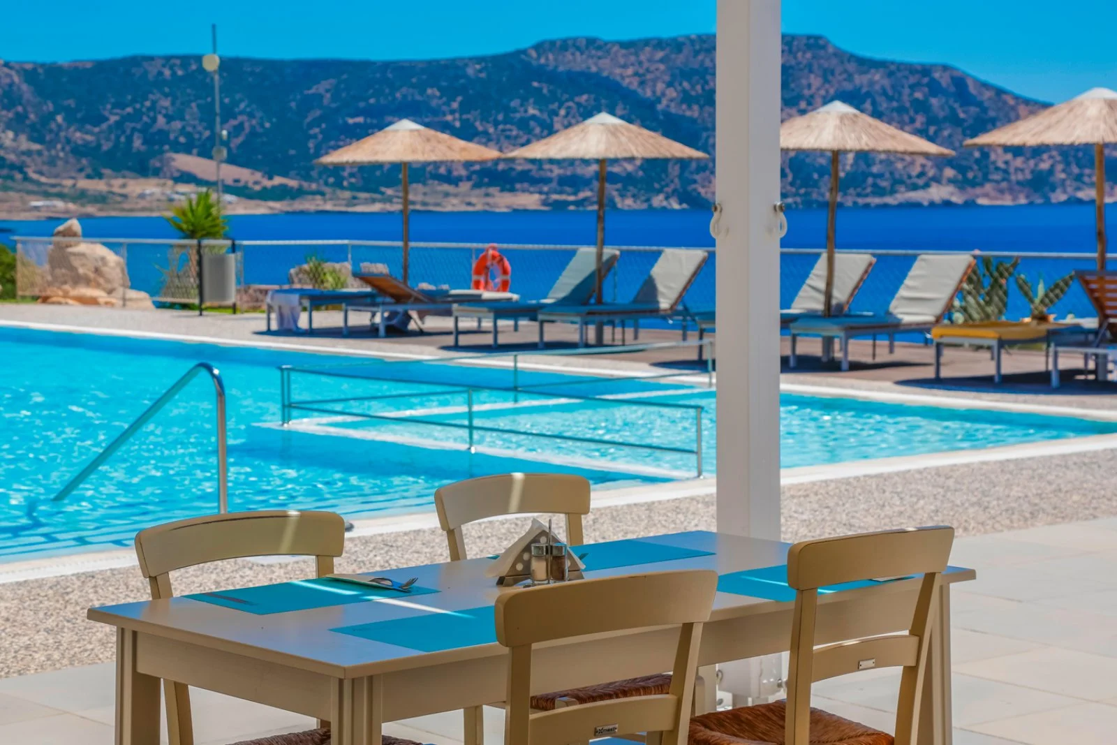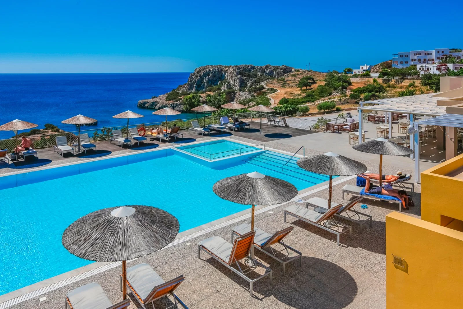 - la vista sul blu della baia di Amoopi è mozzafiato da ogni punto dell’hotel