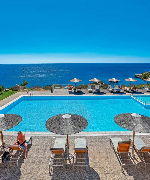 In suggestiva e privilegiata posizione panoramica, con una stupenda vista sull’Egeo direttamente dal balcone della camera, e a pochi passi dalle più belle spiagge della zona di Amoopi. Costruito in stile minimale nei toni caldi della terra e con dettagli in pietra a vista per inserirsi al meglio nell’incontaminata e aspra natura circostante. L’ambiente è confortevole e curato grazie all’attenta gestione dei proprietari e i servizi di buona qualità come dimostra il costante apprezzamento degli ospiti Alpitour. Pubblicato in esclusiva solo sui cataloghi Alpitour.