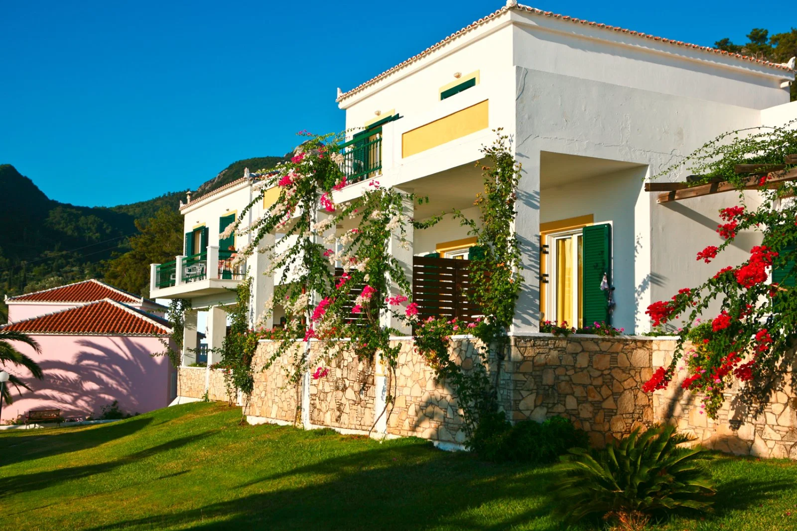 A circa 600 m da due delle più famose spiagge dell’isola: Lemonakia e Tsamadou, entrambe di sabbia e ciottoli. Dispone di 2 piscine di cui 1 per bambini. Uso di lettini e ombrelloni gratuito solo in piscina. Teli mare a pagamento.