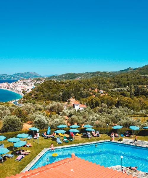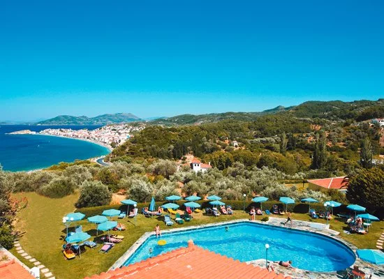 Sulla costa nord dell’isola di Samos, a circa 1,5 km dal villaggio di Kokkari, 10 km dalla città di Samos e 26 km dall’aeroporto. Fermata bus di linea a 200 m. Piacevole struttura in posizione panoramica, con corpo centrale e vari edifici in stile bungalow a 2 e 3 piani immersi in verdi giardini. L’hotel mette a disposizione degli ospiti un servizio navetta gratuito a orari fissi per il villaggio di Kokkari e per le spiagge di Lemonakia e Tsamadou.