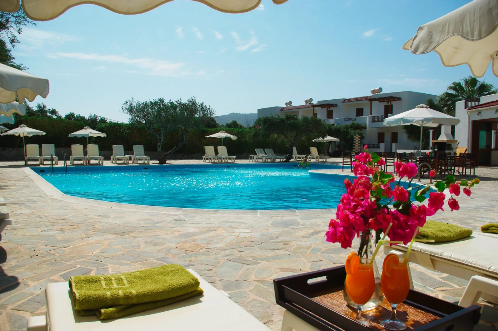 La spiaggia più vicina, quella lunga e sabbiosa di Pigadia, si trova a circa 350 m. L'hotel dispone di piscina con area separata per bambini. Uso di ombrelloni e lettini gratuito solo in piscina, teli mare non disponibili.