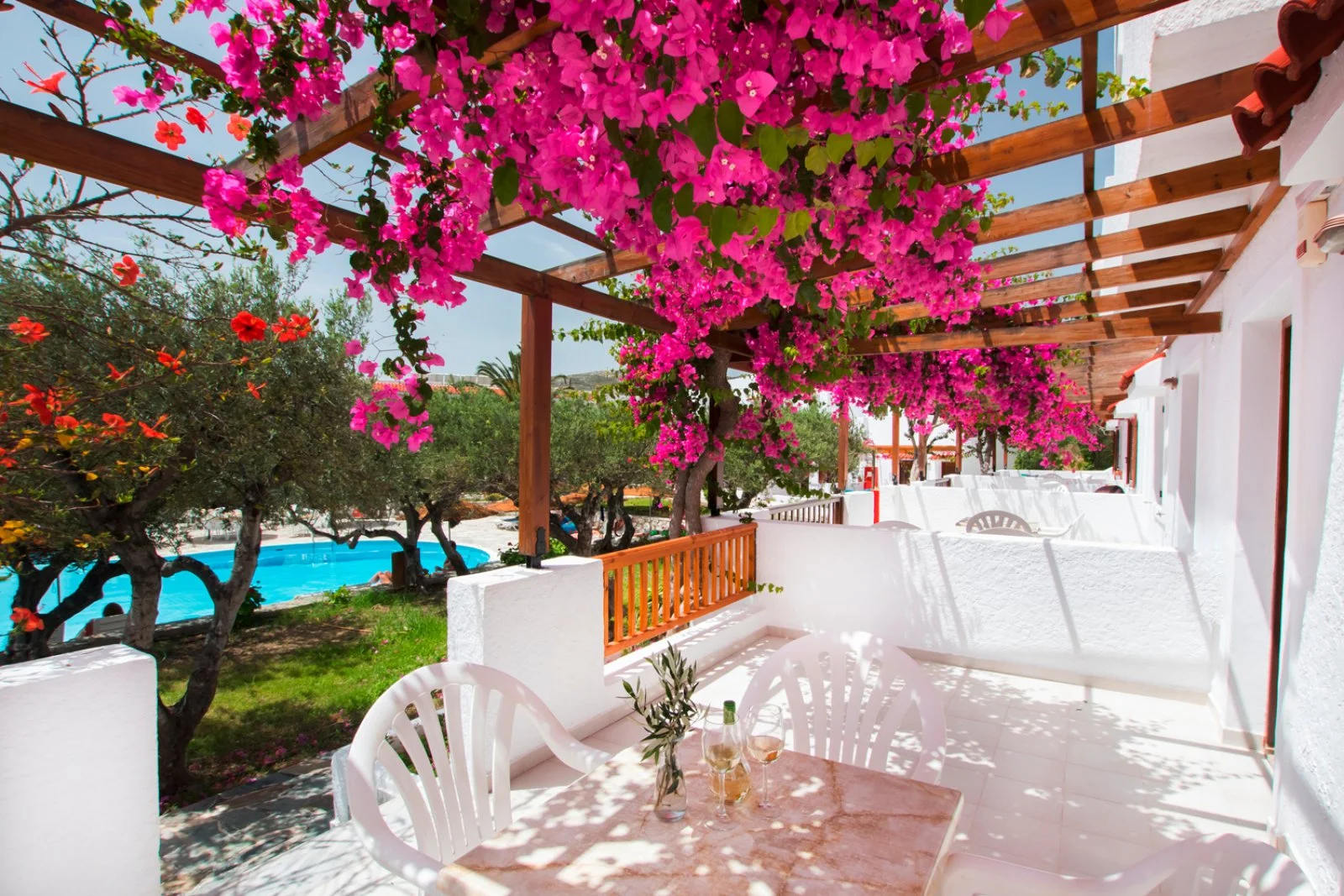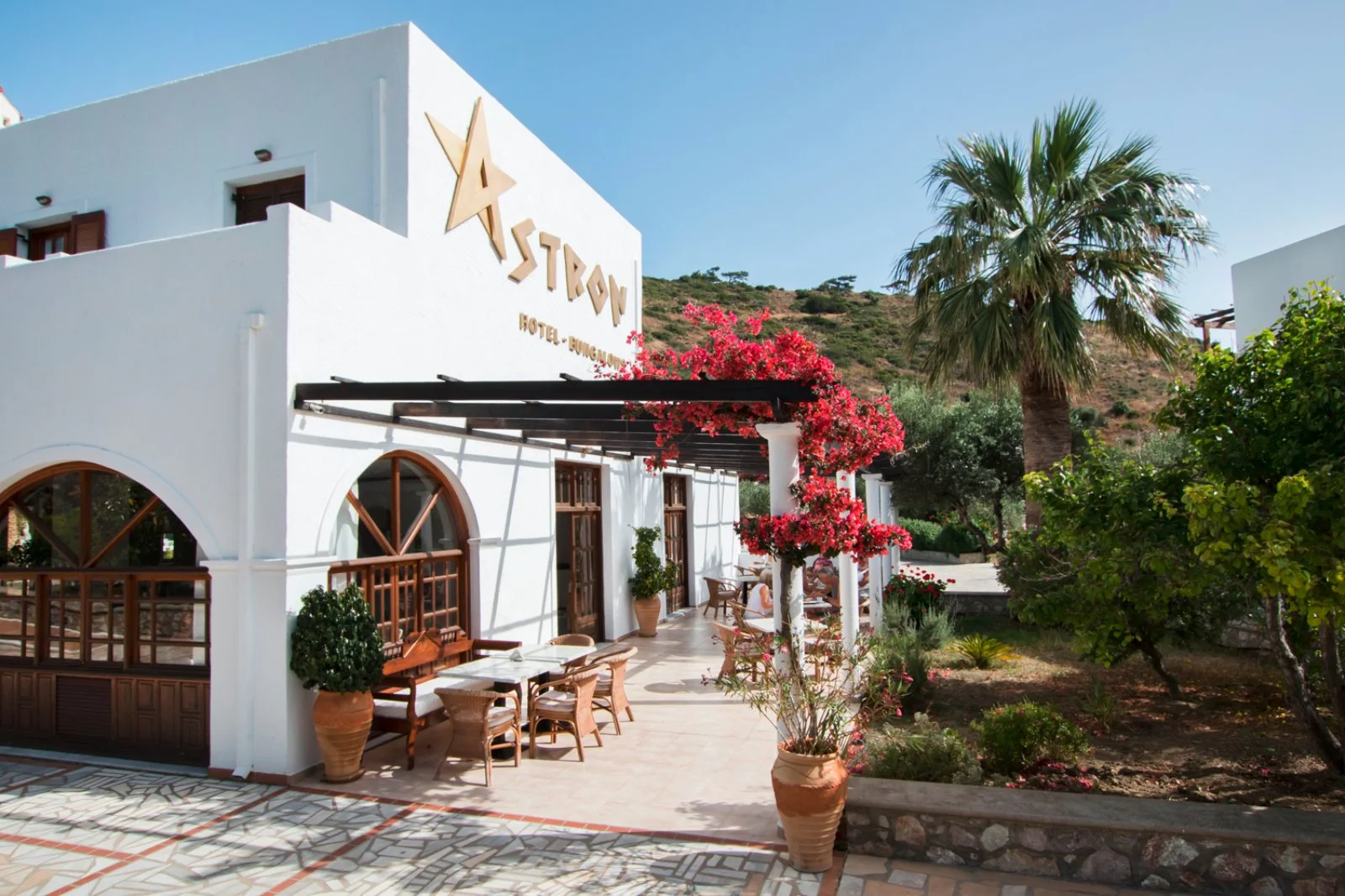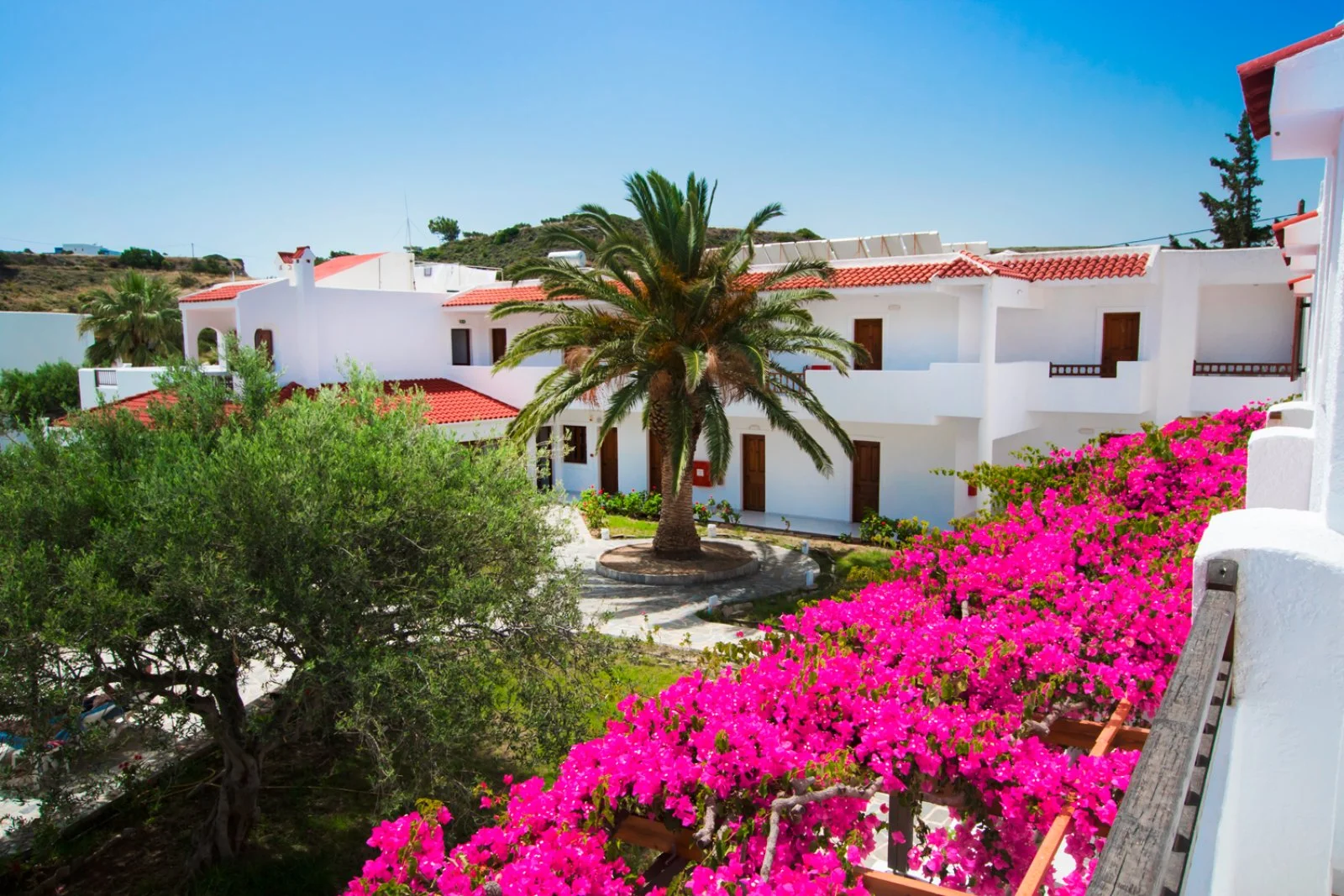 A circa 1,6 km dal centro di Pigadia, raggiungibile anche con una piacevole passeggiata, e 15 km dall’aeroporto. Gradevole struttura, composta da 5 edifici a 2 piani di un bianco abbagliante e impreziositi dalla presenza di coloratissime bouganville, che si dispongono intorno alla piscina e sono circondati dal verde della macchia mediterranea.