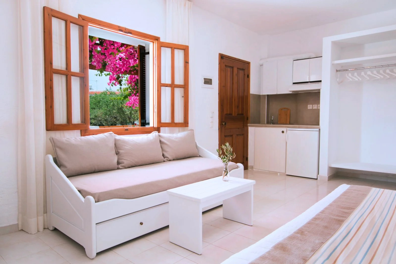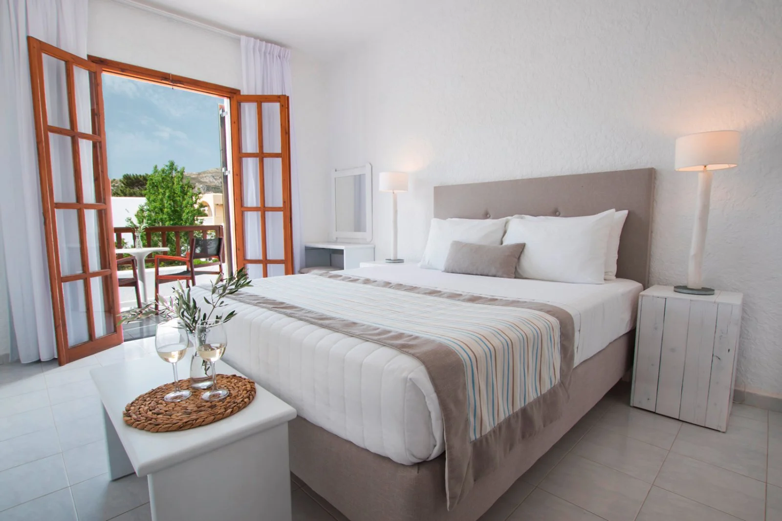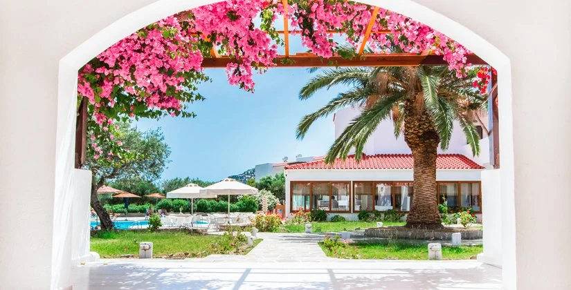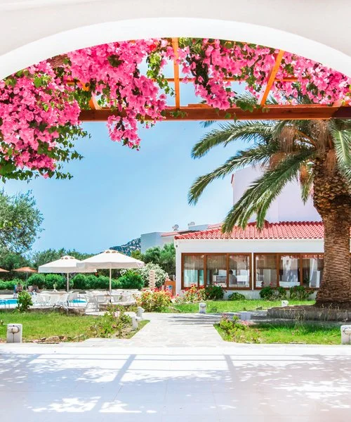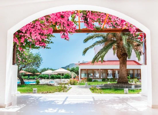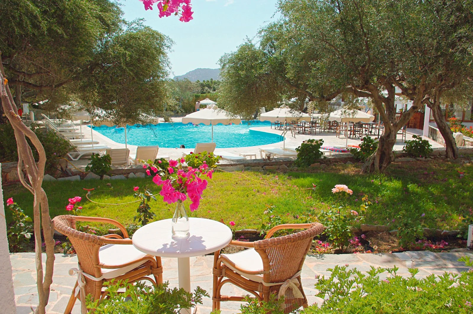 A circa 1,6 km dal centro di Pigadia, raggiungibile anche con una piacevole passeggiata, e 15 km dall’aeroporto. Gradevole struttura, composta da 5 edifici a 2 piani di un bianco abbagliante e impreziositi dalla presenza di coloratissime bouganville, che si dispongono intorno alla piscina e sono circondati dal verde della macchia mediterranea.