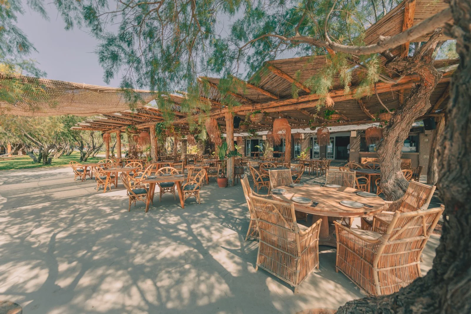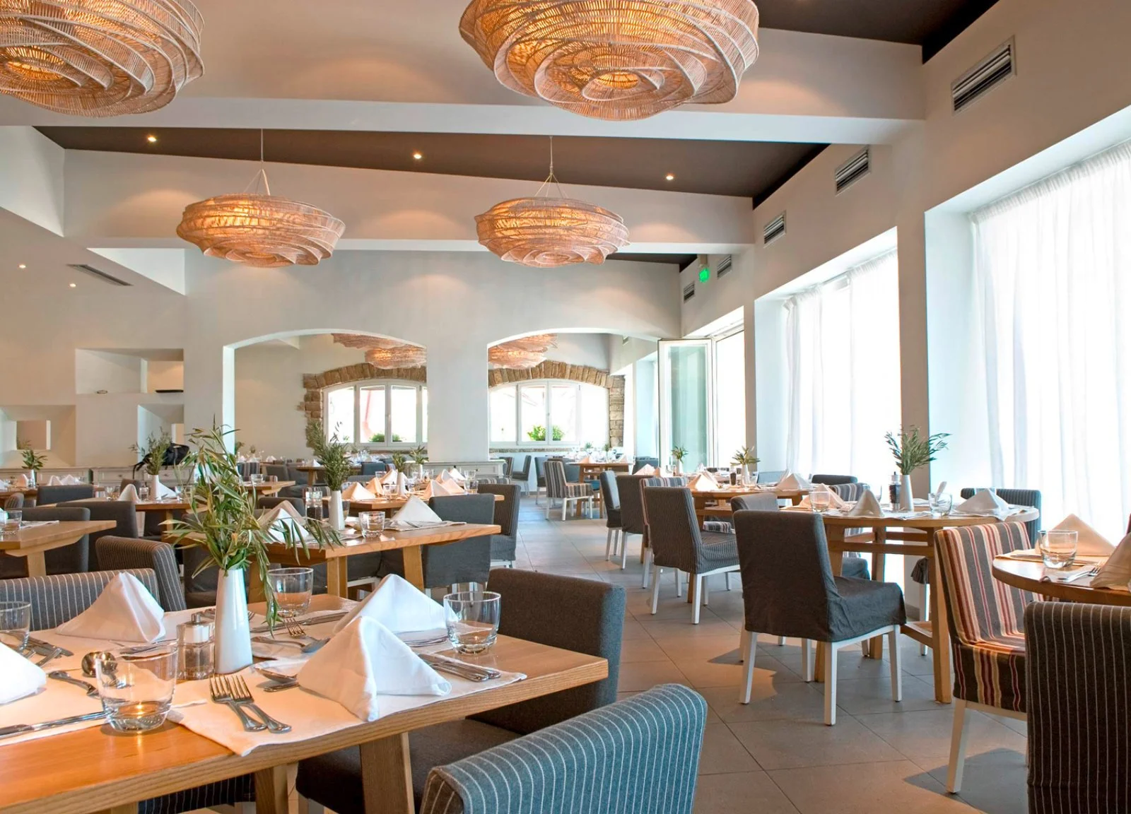 L’offerta gastronomica è improntata ai sapori tradizionali e senza tempo delle specialità greche e mediterranee. Il ristorante principale nella zona hotel con servizio a buffet, show cooking, corner tematici due sere a settimana e terrazza all’aperto offre la prima colazione e, per chi sceglie la mezza pensione anche la cena. Inoltre, a pagamento, quattro ristoranti à la carte: Asterias sulla spiaggia con piatti anche d’ispirazione italiana in un ambiente boho-chic affacciato sul mare e, aperti per cena, un tipico Kafenion nella zona village per un po’ di autentica cucina greca, l’Unan Asian Fusion asiatico con sushi-bar per un assaggio d’oriente e il nuovo Pnoe di pesce in riva al mare. A completare l’offerta vari bar tra cui lounge bar e snack bar presso la piscina.