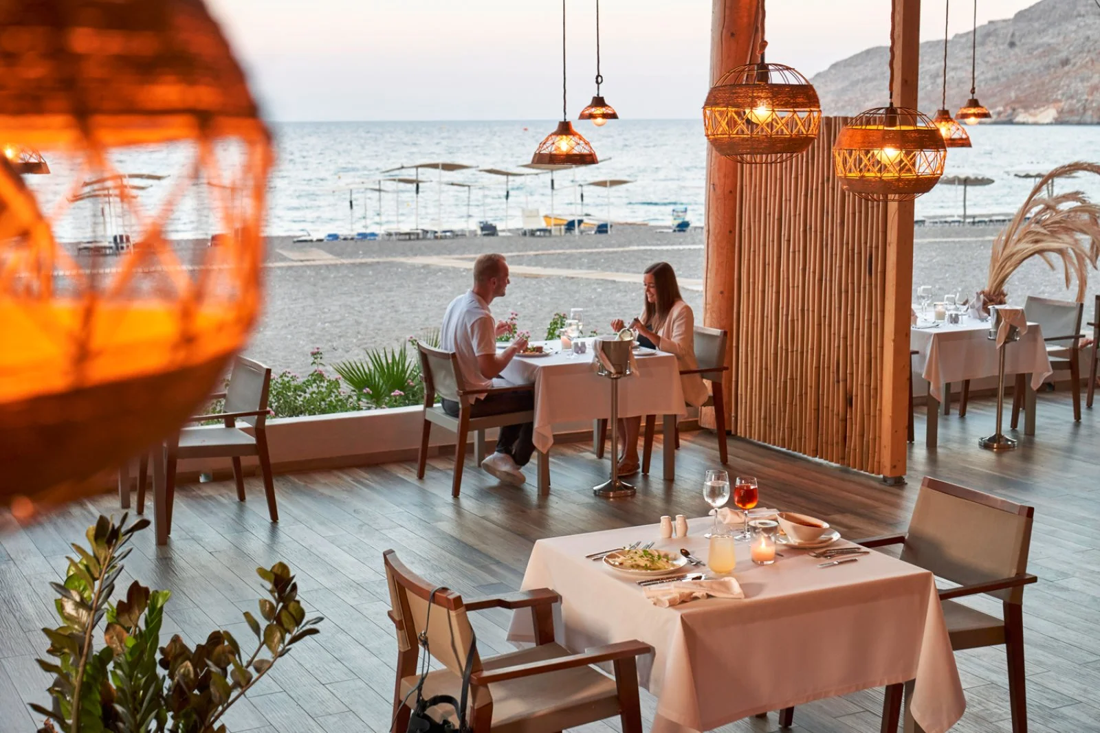 Il ristorante principale con un’ampia ed elegante sala da pranzo offre prima colazione e cena con servizio a buffet, angolo show cooking e settimanalmente cena greca, cena a base di pesce, degustazione di vini locali e serata di gala. Inoltre, possibilità di cenare, una volta per soggiorno e previa prenotazione, presso il delizioso ristorante Culinarium in stile boho-chic con menù fisso. A pagamento: pool/beach bar, lobby bar, menù à la carte per pranzo e cena presso il ristorante in spiaggia Levante/Culinarium.
