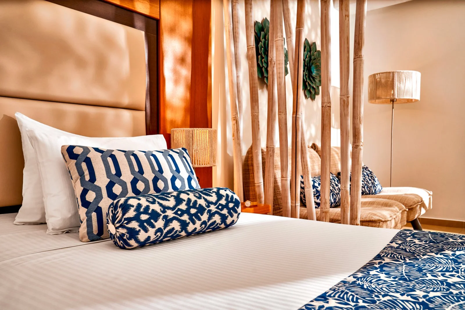 222, in stile contemporaneo, tutte con servizi privati, asciugacapelli, accappatoio e ciabattine, Wi-Fi, telefono, TV satellitare, aria condizionata con controllo individuale, cassetta di sicurezza, minifrigo, set per tè e caffè con rifornimento giornaliero, terrazzo o balcone e, in omaggio all’arrivo, bottiglia di vino locale e acqua minerale. Le doppie inland view o vista mare sono entrambe situate nel corpo centrale, le superior suite vista mare laterale con area soggiorno, ampia terrazza e piscina privata, sono invece ubicate nell’annesso e dotate anche di macchina per caffè espresso e rifornimento a giorni alterni del minibar con acqua, soft-drink e birra. Doppie e superior suite ospitano fino a 3 adulti. A pagamento: consumazioni minibar per le camere doppie e rifornimenti addizionali per le superior suite.