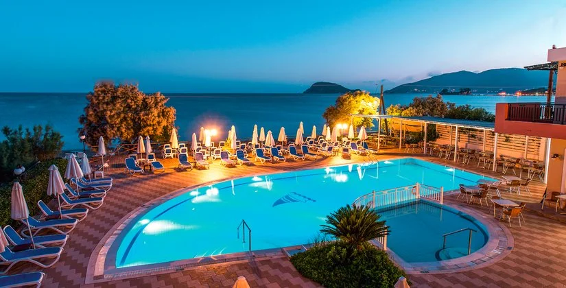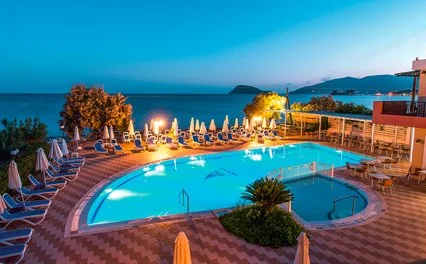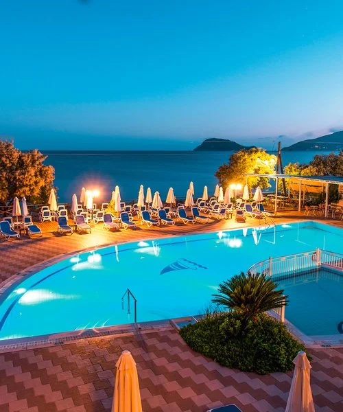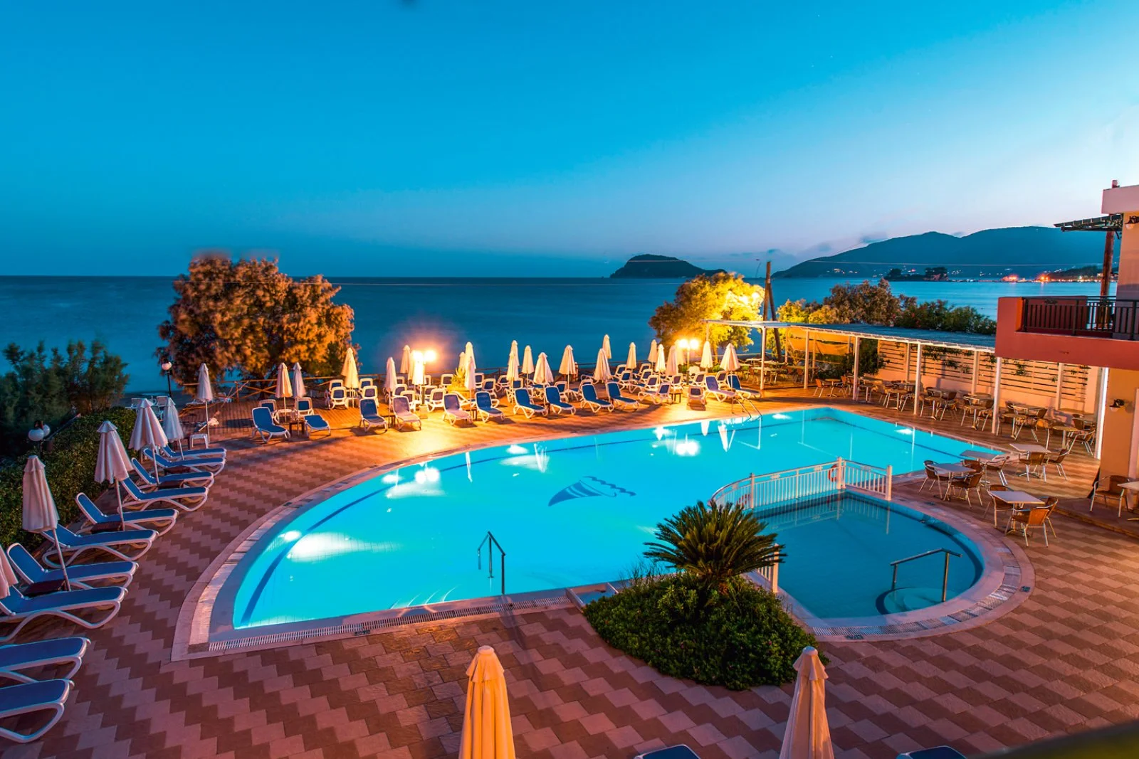 Affacciato sul noto litorale di Laganas, a 500 m dall’omonimo centro, dista 6 km dall’aeroporto e 10 km dal porto. Fermata bus di linea a 100 m. La struttura si compone di un corpo centrale e 7 edifici annessi a 3 piani, collegati tra loro da vialetti contornati da aiuole curate e rigogliosa vegetazione mediterranea.