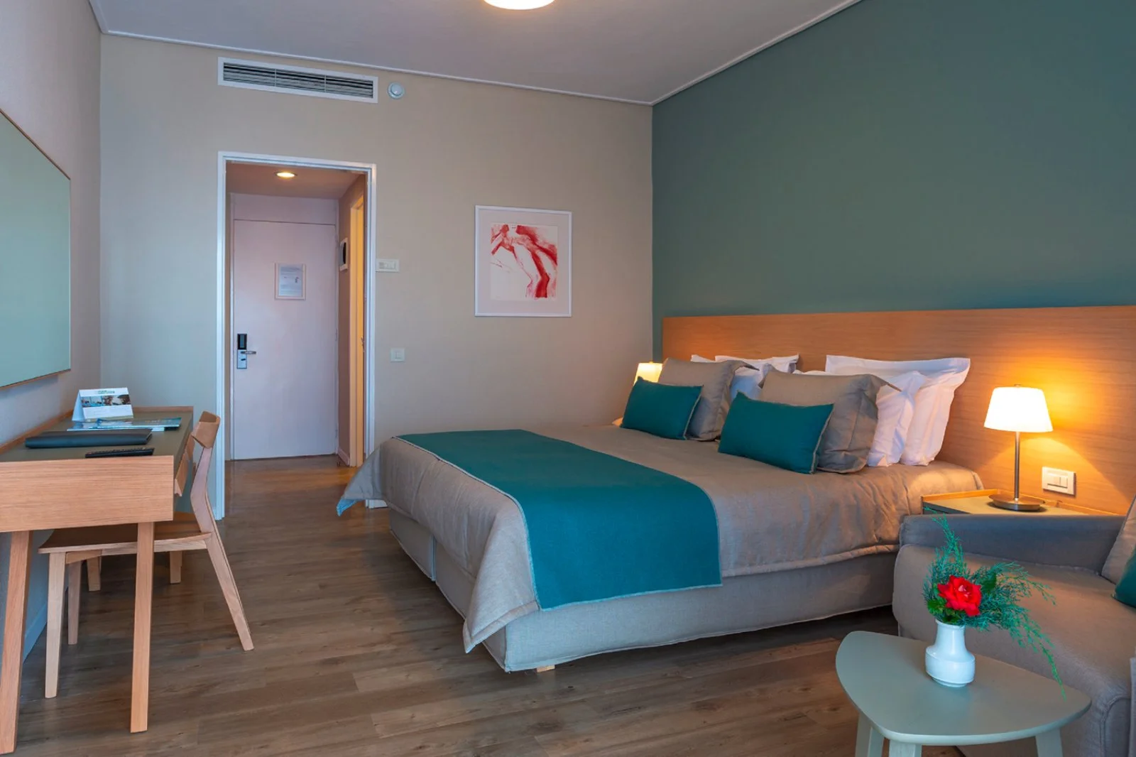 258, telefono, aria condizionata con controllo individuale, TV satellitare, minibar (consumazioni a pagamento), asciugacapelli, cassetta di sicurezza, accesso internet Wi-Fi e balcone o terrazzo. Le doppie promo sono camere a tariffa promozionale e disponibilità limitata e ospitano massimo 2 adulti (non dispongono di balcone/terrazzo). Le doppie standard e le standard vista mare possono ospitare massimo 3 adulti, mentre le standard vista giardino possono ospitare fino a 3 adulti + 1 bambino (3° e 4° persona in letto aggiunto o poltrona letto). Le superior vista Koukounaries beach, le executive panoramic vista mare e le executive plus panoramic vista mare, più spaziose, e tutte con ambiente unico, hanno occupazione massima di 3 adulti; inoltre, le suite vista mare (massimo 4 adulti) sono composte da camera da letto e soggiorno, hanno a disposizione, accappatoio e ciabattine. Infine, omaggi esclusivi solo per chi soggiorna nelle camere executive.