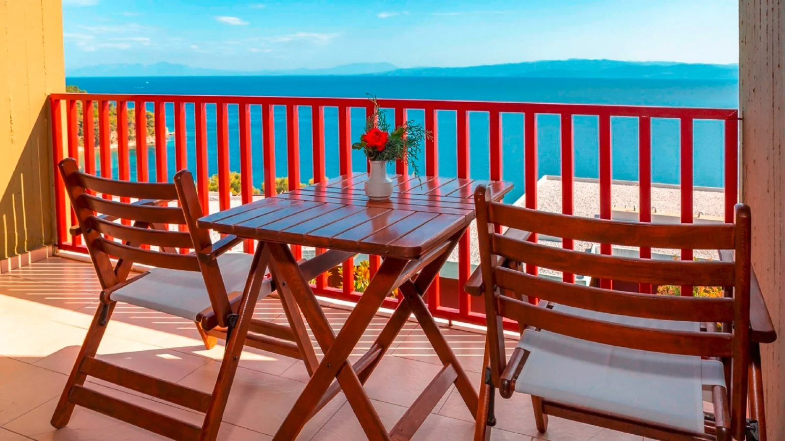 Dista circa 150 m dalla piccola spiaggia di sabbia di Maratha e 250 m dalla spiaggia di Koukounaries, anch’essa di sabbia: entrambe sono raggiungibili attraversando la litoranea e percorrendo una scalinata o tramite il servizio navetta. Dispone di piscina con ampia terrazza. Uso gratuito di ombrelloni e lettini solo in piscina, disponibili teli mare.