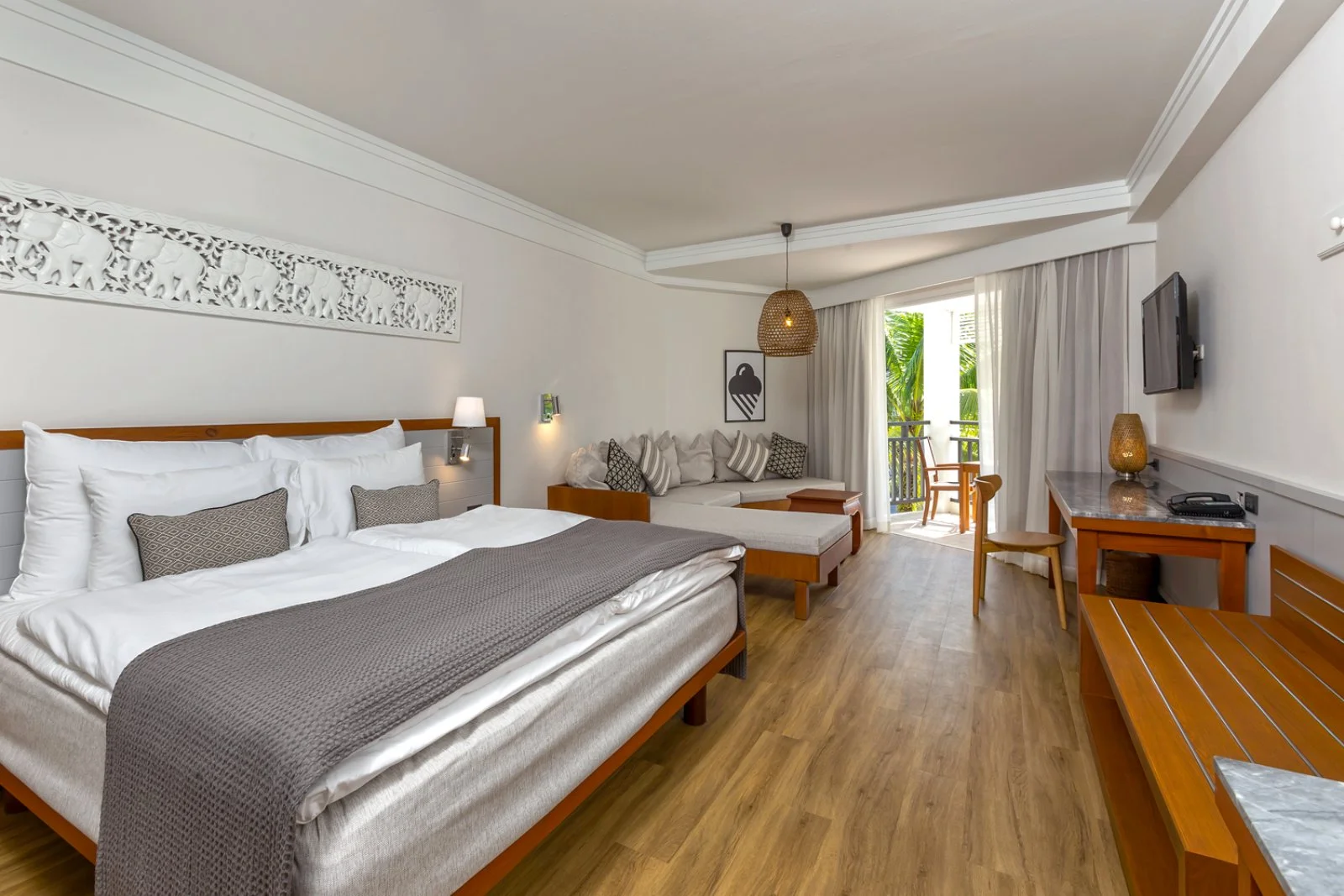 Ideale per famiglie, dispone di 280 camere di diverse tipologie: studio, royal studio e le più ampie family suite. Tutti gli studio dispongono di letto matrimoniale o due letti e ampio divano, kitchenette, aria condizionata, TV satellitare, connessione Wi-Fi, cassetta di sicurezza, set per la preparazione di tè e caffè, accappatoi e ciabattine. Le royal studio sono vista piscina e dispongono di balcone o terrazza attrezzata e le family suite dispongono di 2 ambienti separati e doppi servizi. Tutte le camere possono ospitare fino a 2 adulti e 2 bambini o teenagers fino a 17 anni.