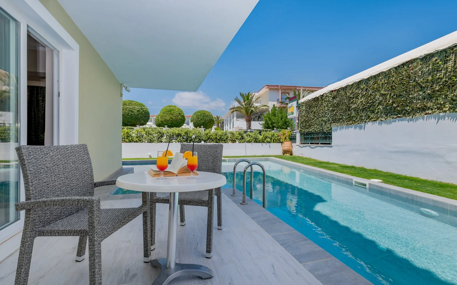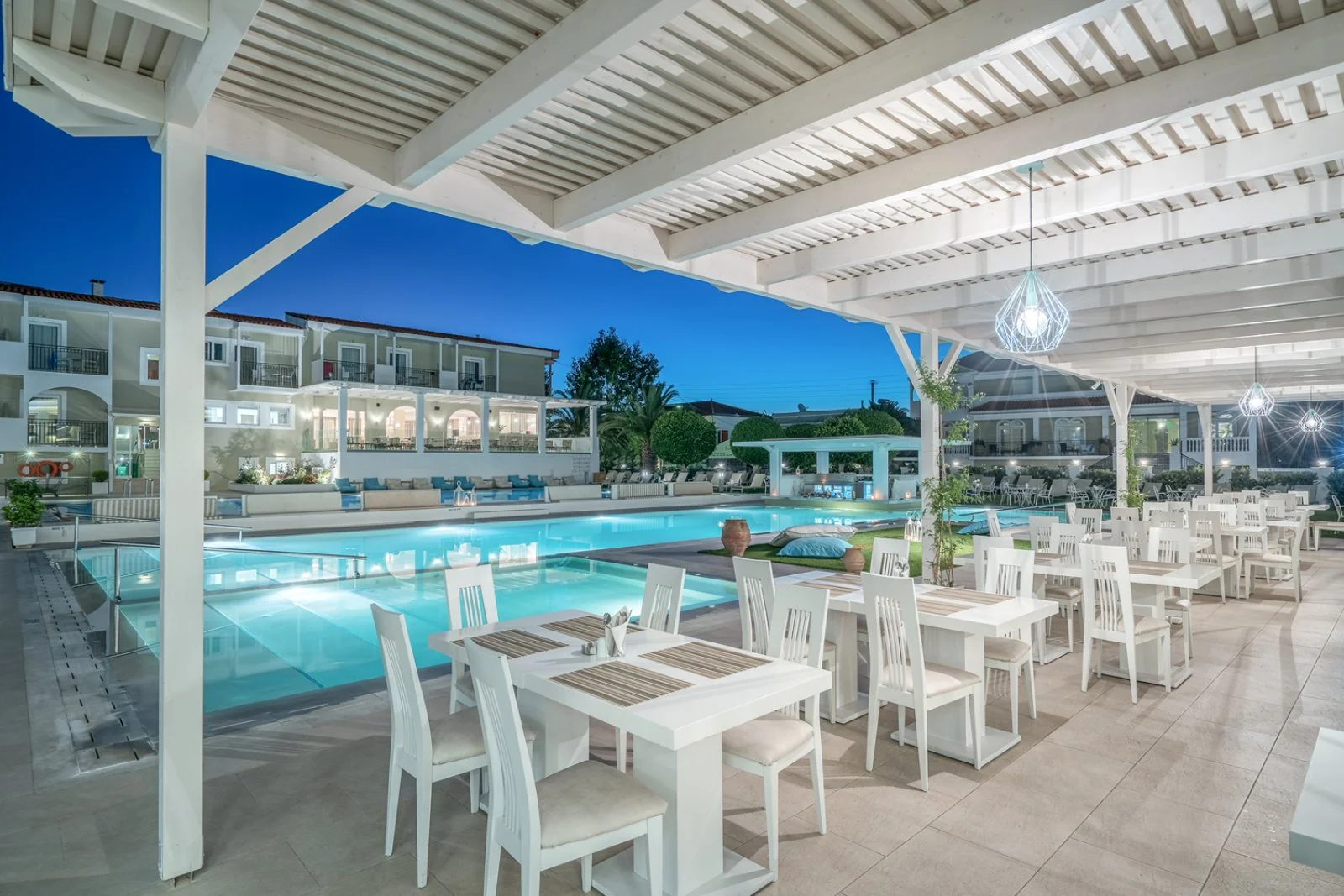 Situato a circa 450 m dall’animato centro di Laganas, dista 7 km da Zante città e dall’aeroporto. Si compone di un corpo centrale a 3 piani che ospita i servizi comuni e le camere standard e un edificio annesso a 2 piani dove si trovano le camere premium. Il complesso, dalla tipica architettura classica mediterranea, è dipinto con colori chiari, in armonia con gli spazi esterni, caratterizzati da giardini verdi e curati.