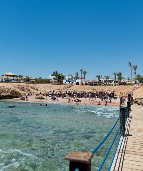 Amphoras Beach sorge in posizione scenografica sulla Ras Umm Sid, con un layout ampio e curato che rende semplici gli spostamenti interni e l’accesso alle principali aree del resort. La spiaggia, estesa e ben attrezzata, offre 300 metri di litorale e un pontile che permette di entrare in mare in tutta sicurezza e raggiungere la barriera corallina, uno dei tratti più affascinanti del Mar Rosso e molto apprezzato da chi pratica snorkeling e immersioni.