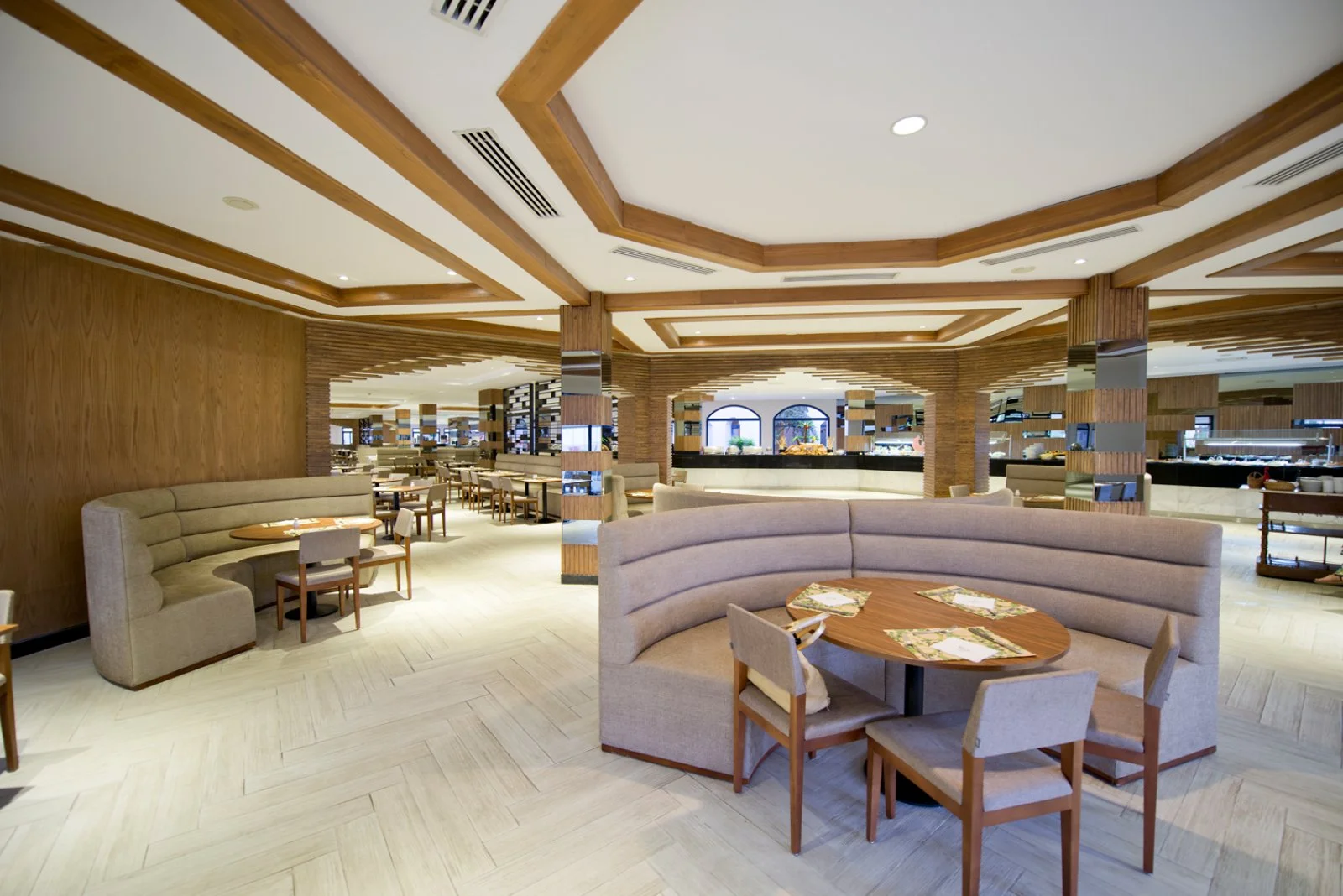 un ristorante principale a buffet Amphoras e 5 ristoranti à la carte, tra cui due italiani, Mare Rosso (presso Blu) e Bellavista, un ristorante asiatico Red Dragon, uno con specialità di pesce Mermaid e uno internazionale Alexandria (presso Aqua). 9 bar, di cui due aperti h24 (Welcome e Bistrò), uno shisha lounge Lavalina, uno sulla spiaggia, tre presso le piscine e due nella zona dei negozi.