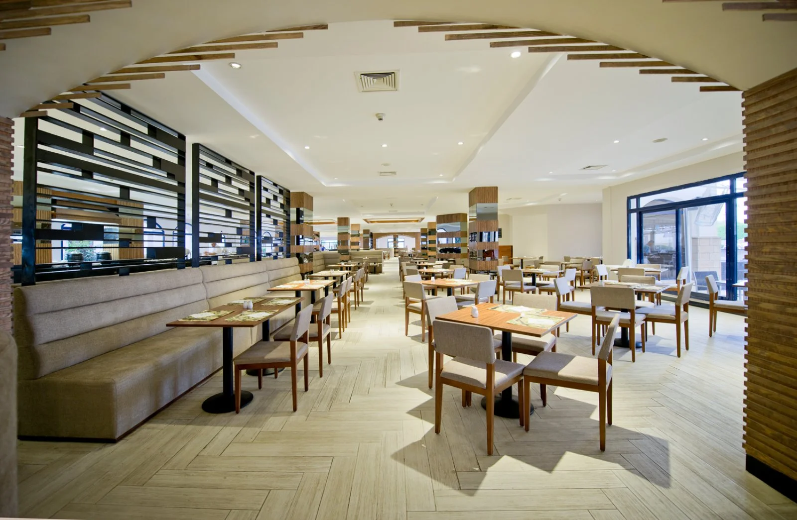 Amphoras Beach sorge in posizione scenografica sulla Ras Umm Sid, con un layout ampio e curato che rende semplici gli spostamenti interni e l’accesso alle principali aree del resort. La spiaggia, estesa e ben attrezzata, offre 300 metri di litorale e un pontile che permette di entrare in mare in tutta sicurezza e raggiungere la barriera corallina, uno dei tratti più affascinanti del Mar Rosso e molto apprezzato da chi pratica snorkeling e immersioni. Le camere superior, recentemente rinnovate, combinano uno stile moderno a un comfort funzionale, perfetto per chi cerca qualità e semplicità. Attorno, i servizi del resort completano l’esperienza: sei piscine distribuite in diverse zone, attività sportive come padel, minigolf, beach volley e water polo, e spazi dedicati ai più giovani come lo Xone Teen Bar, dotato di videogiochi e PlayStation. A tutto questo si aggiunge la comodità del collegamento con la struttura sorella Aqua, in seconda linea, che consente l’accesso dei clienti all’aquapark. Il trattamento Ultra All Inclusive rappresenta un vero punto di forza: bevande h24 nei vari bar del resort, alcolici importati premium inclusi, snack disponibili durante tutta la giornata (e anche di notte) e cene à la carte illimitate nei quattro ristoranti tematici, per un’esperienza gastronomica varia e senza restrizioni. In pochi minuti di taxi si raggiungono la vivacità serale di Naama Bay e l’atmosfera caratteristica della Sharm Vecchia, rendendo l’hotel una base ideale per chi desidera unire mare e relax alla possibilità di vivere appieno il ritmo della destinazione.