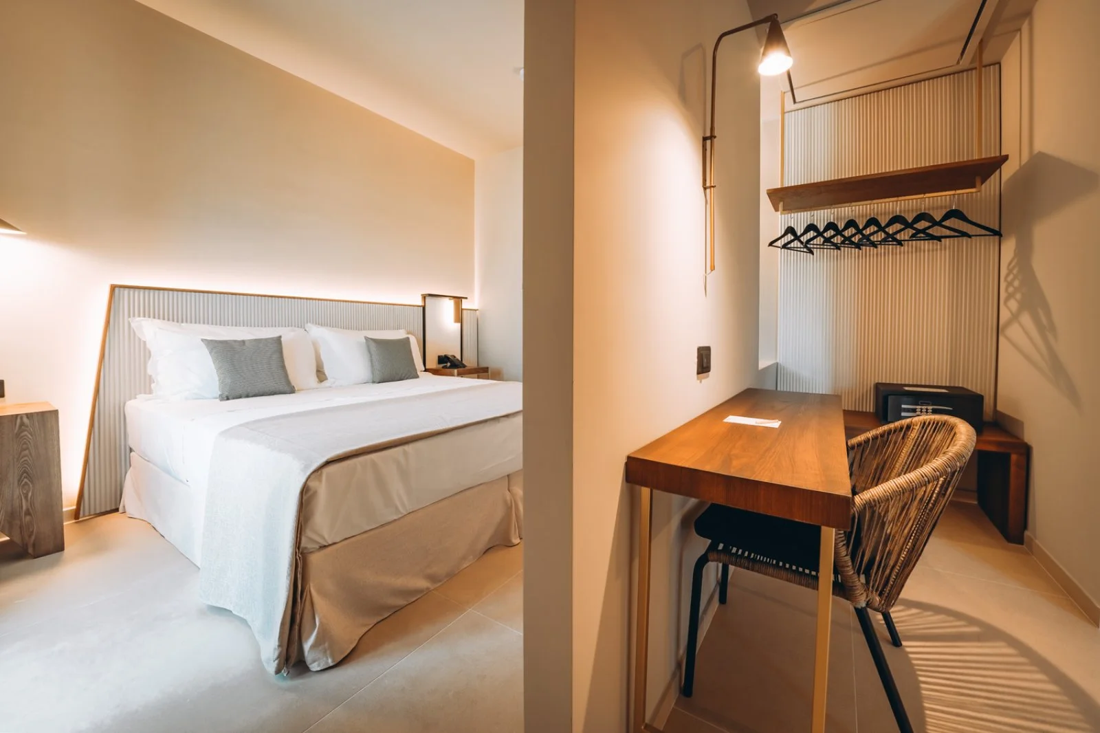 33 camere caratterizzate da un design minimalista e contemporaneo. Si dividono in: standard con finestra, standard con balcone alla francese e junior suite con balcone. Tutte le tipologie sono dotate di asciugacapelli, doccia, aria condizionata, Wi-Fi, cassetta di sicurezza, TV, minifrigo (consumo a pagamento).