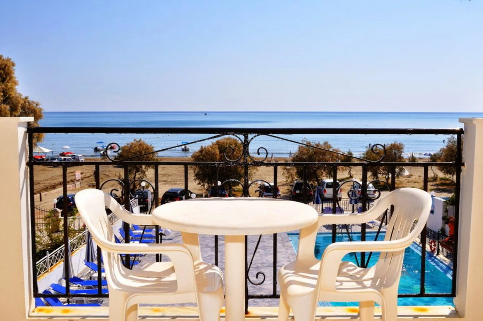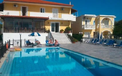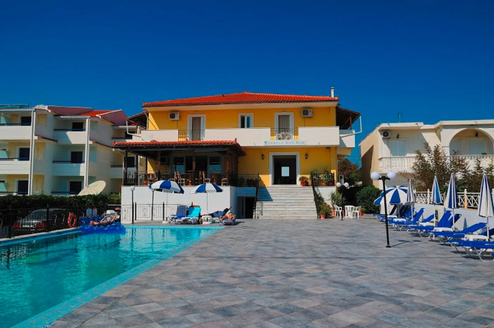 invidiabile posizione direttamente sulla spiaggia di Laganas. Si trova nell’area turistica e la sua vivacissima Main Road con locali aperti fino a tarda notte è facilmente raggiungibile in un paio di minuti di scooter o passeggiando via mare di giorno per un paio di chilometri, magari avendo la fortuna di incontrare qualche nido di tartaruga marina.
