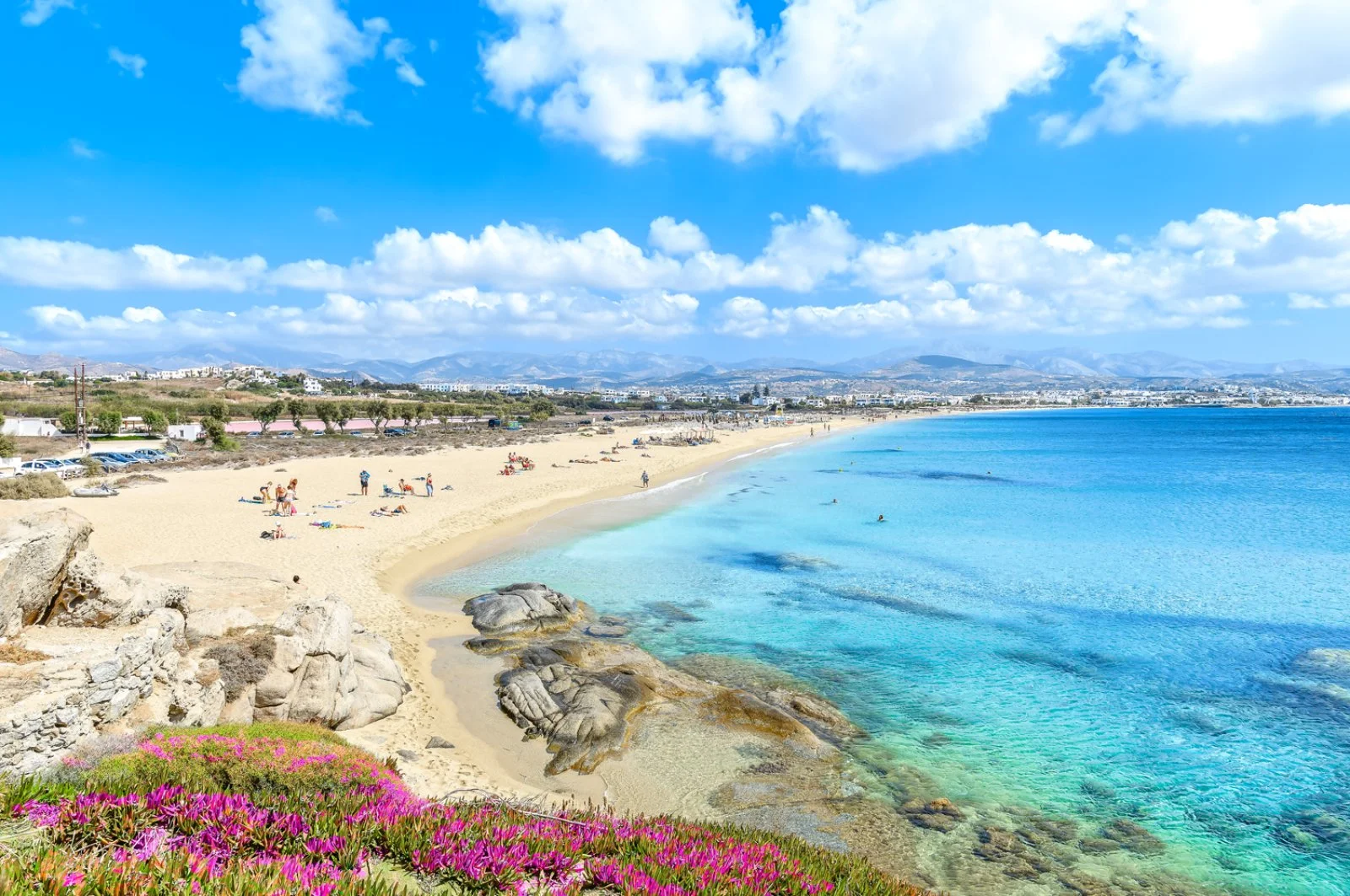 a pochi passi tanto dalla piccola area turistica che dalla spiaggia di Aghios Prokopios, un’ampia e bella baia di sabbia dorata all’estremità occidentale dell’isola. Di giorno potrete concedervi lunghe passeggiate e osservare i tre laghetti di acqua salata rossa alle spalle della spiaggia, mentre la sera una buona taverna tradizionale è tappa obbligatoria per assaggiare la cucina greca. Naxos città, a soli 6 km, merita sicuramente almeno una visita per perdersi nei tortuosi vicoletti del Kastro e ammirare l’antica Portara che troneggia sul mare.