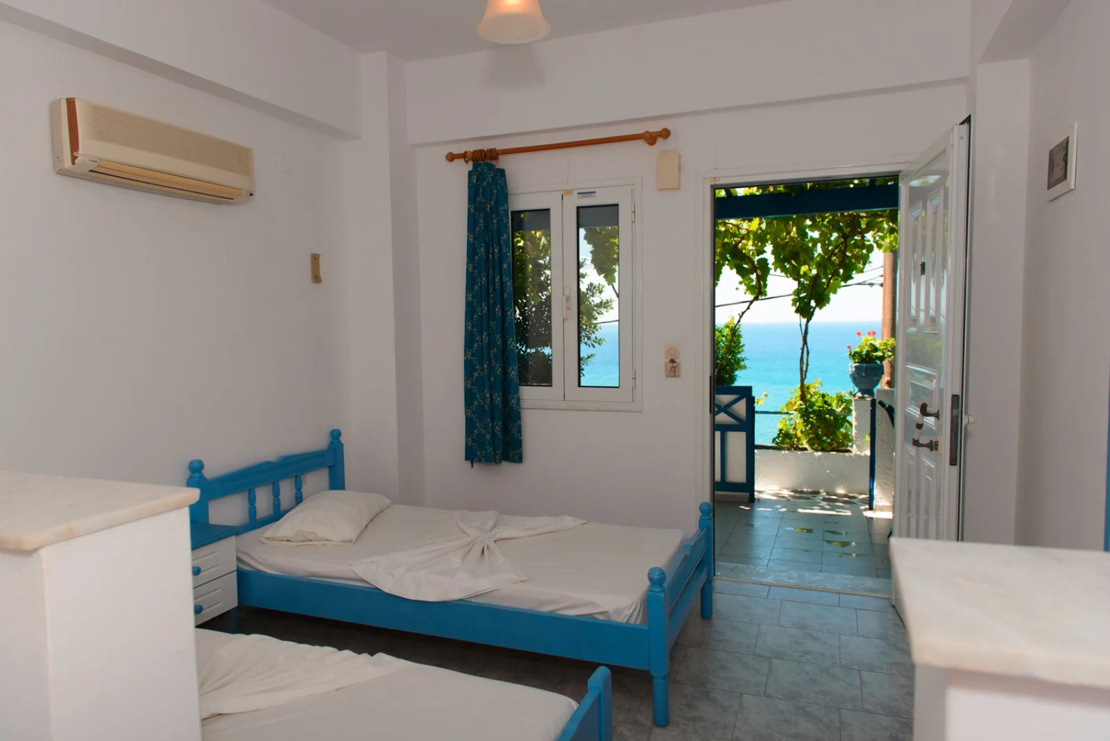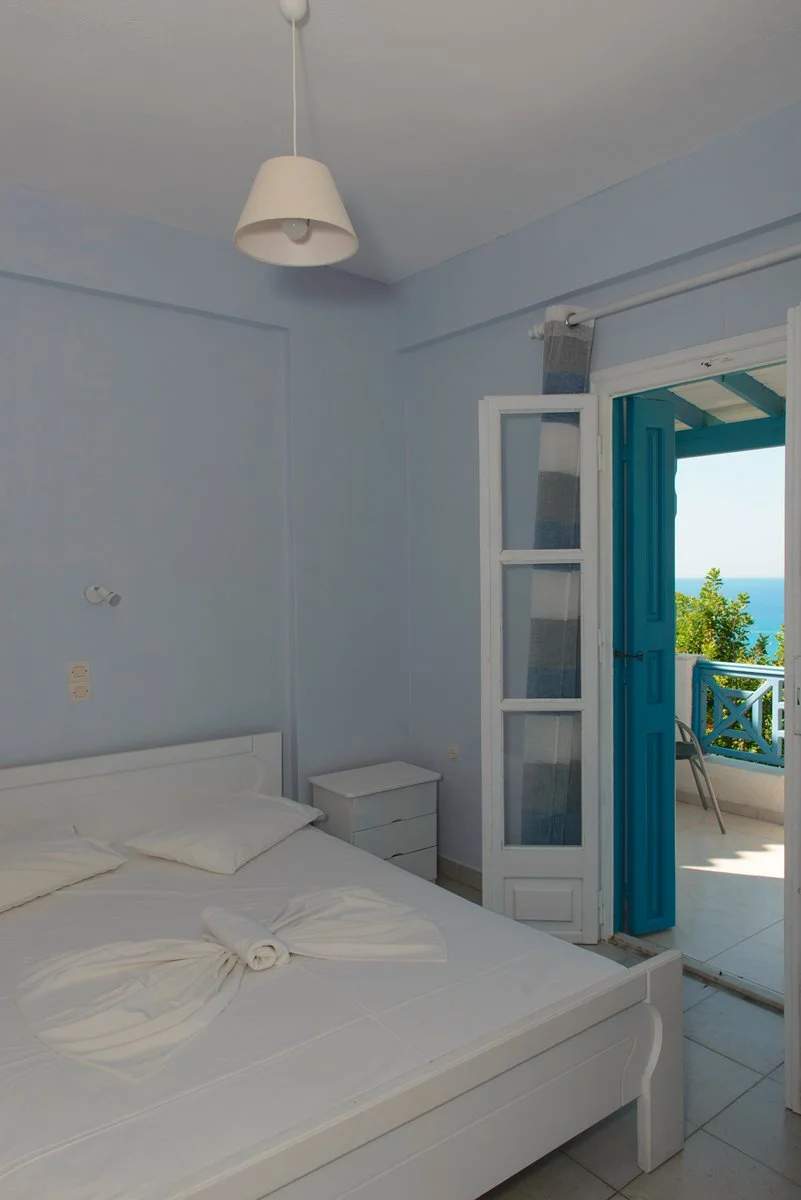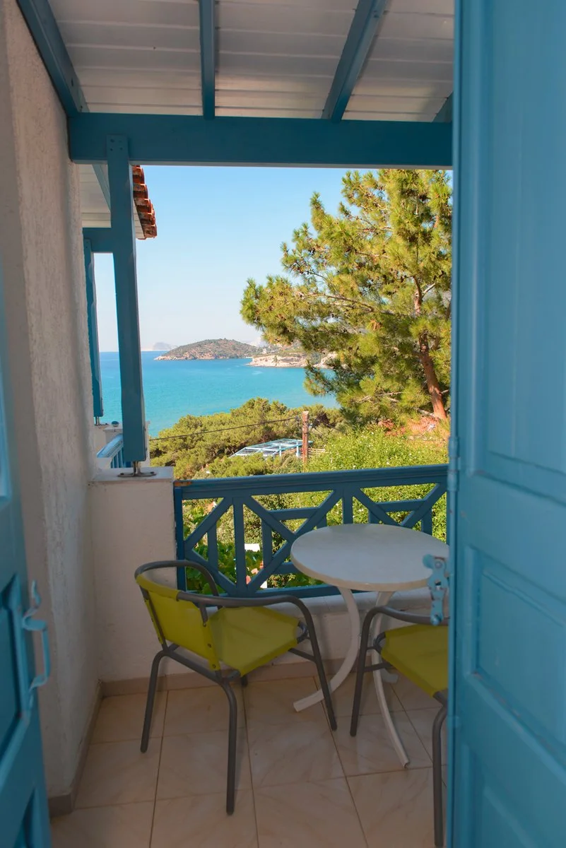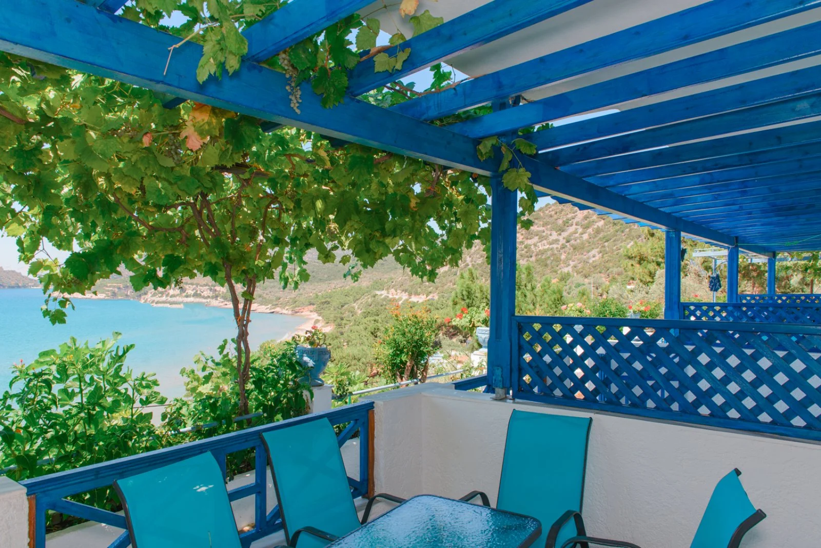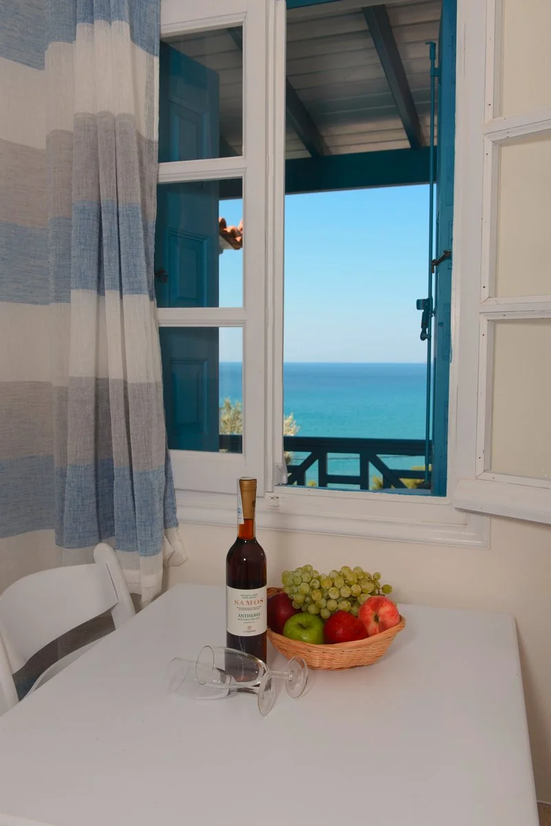vista mozzafiato sulla spiaggia di Psili Ammos. Dispone di studio e di appartamenti tutti vista mare, arredati con semplicità e in modo funzionale e vi si respira un’atmosfera cordiale e genuina grazie alla gestione familiare accogliente. Data la sua posizione al di fuori dei circuiti turistici e assolutamente appartata, è da consigliarsi a chi desidera spingersi fin quasi all’estremo ovest di questa grande isola per staccare totalmente la spina, allontanandosi per un po’ dai ritmi frenetici e ammirando le bellezze naturali di Samos.