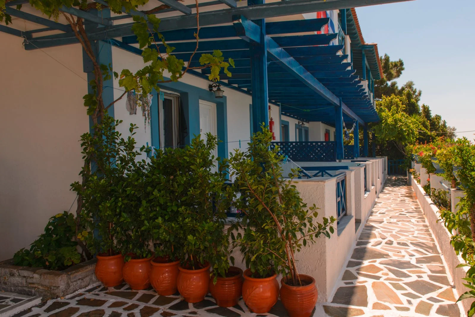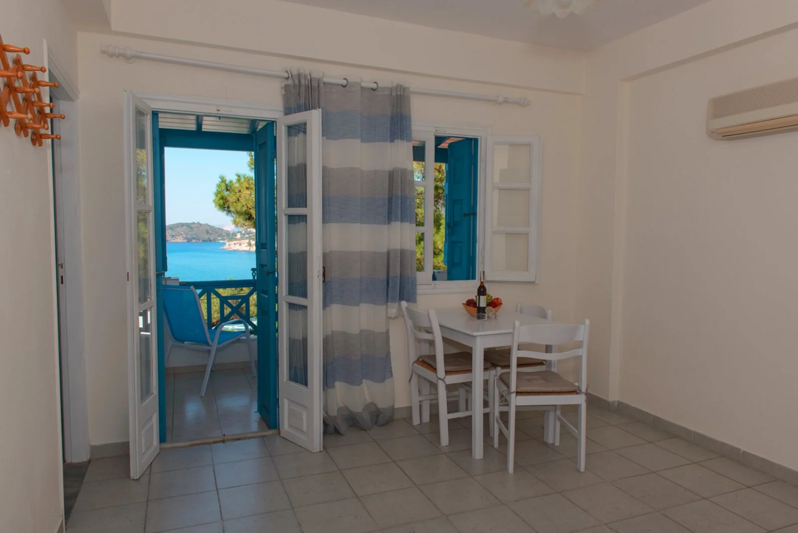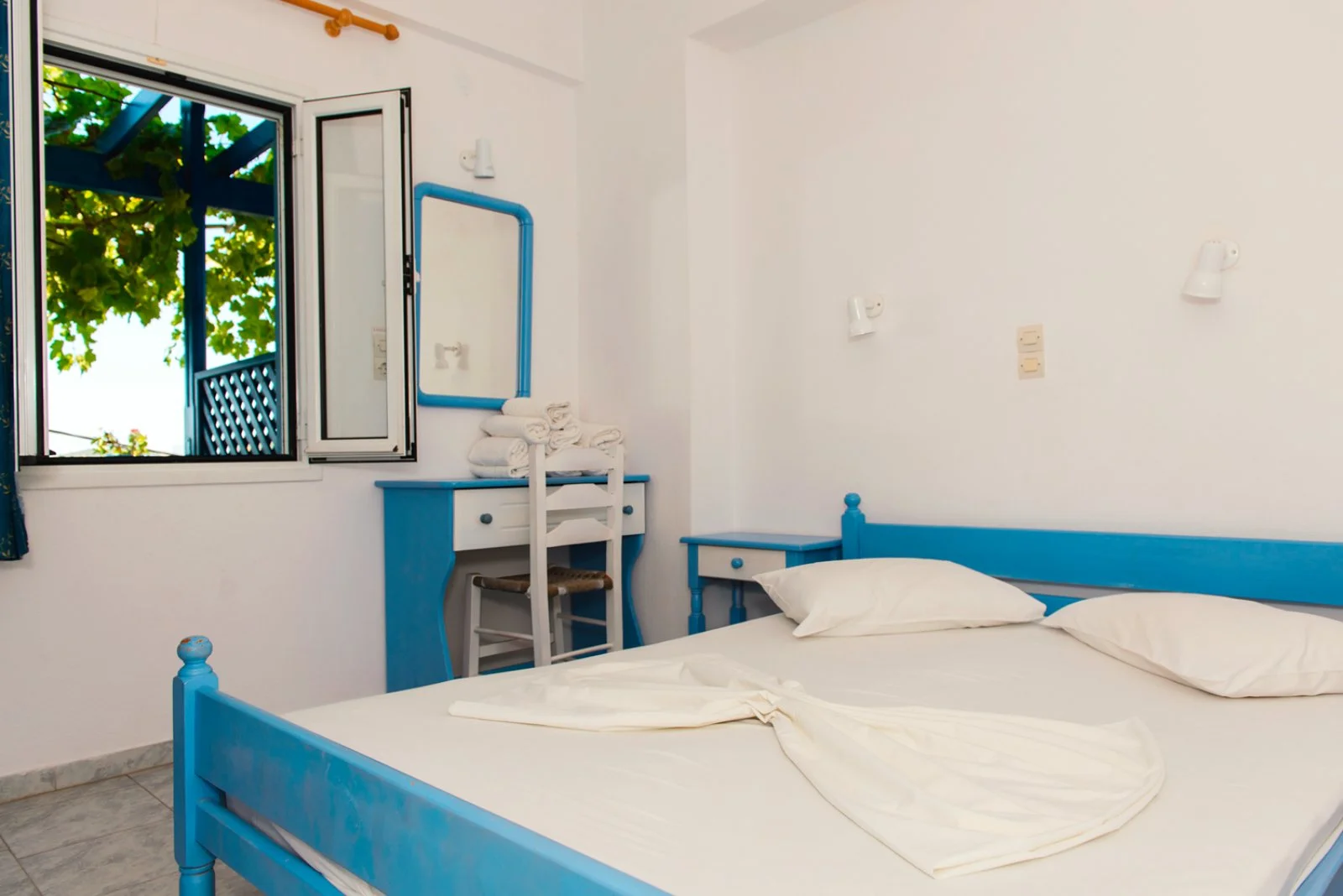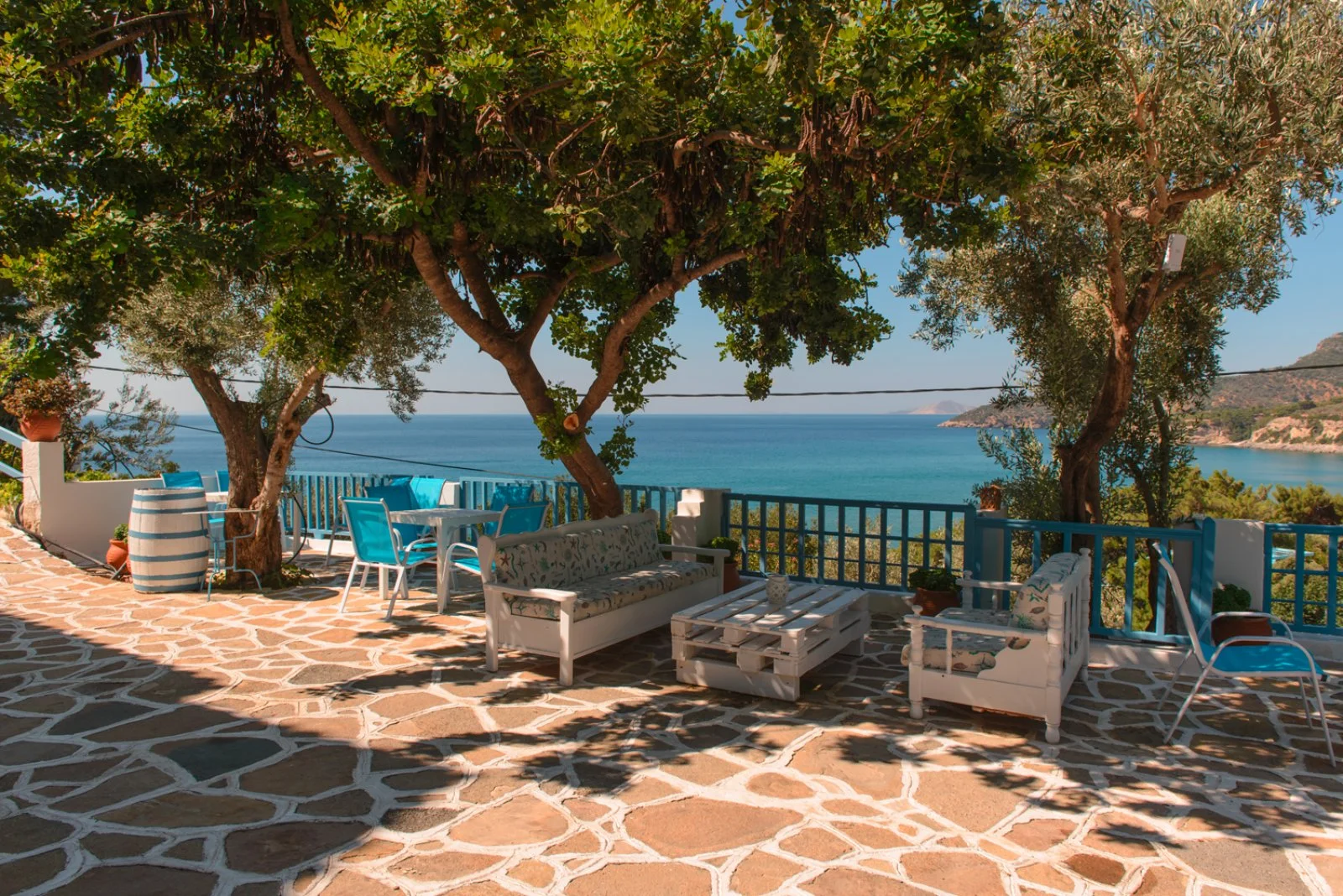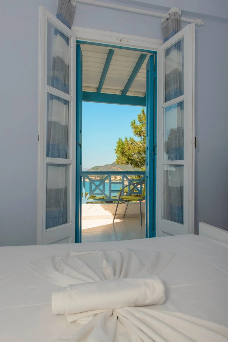 vista mozzafiato sulla spiaggia di Psili Ammos. Dispone di studio e di appartamenti tutti vista mare, arredati con semplicità e in modo funzionale e vi si respira un’atmosfera cordiale e genuina grazie alla gestione familiare accogliente. Data la sua posizione al di fuori dei circuiti turistici e assolutamente appartata, è da consigliarsi a chi desidera spingersi fin quasi all’estremo ovest di questa grande isola per staccare totalmente la spina, allontanandosi per un po’ dai ritmi frenetici e ammirando le bellezze naturali di Samos.