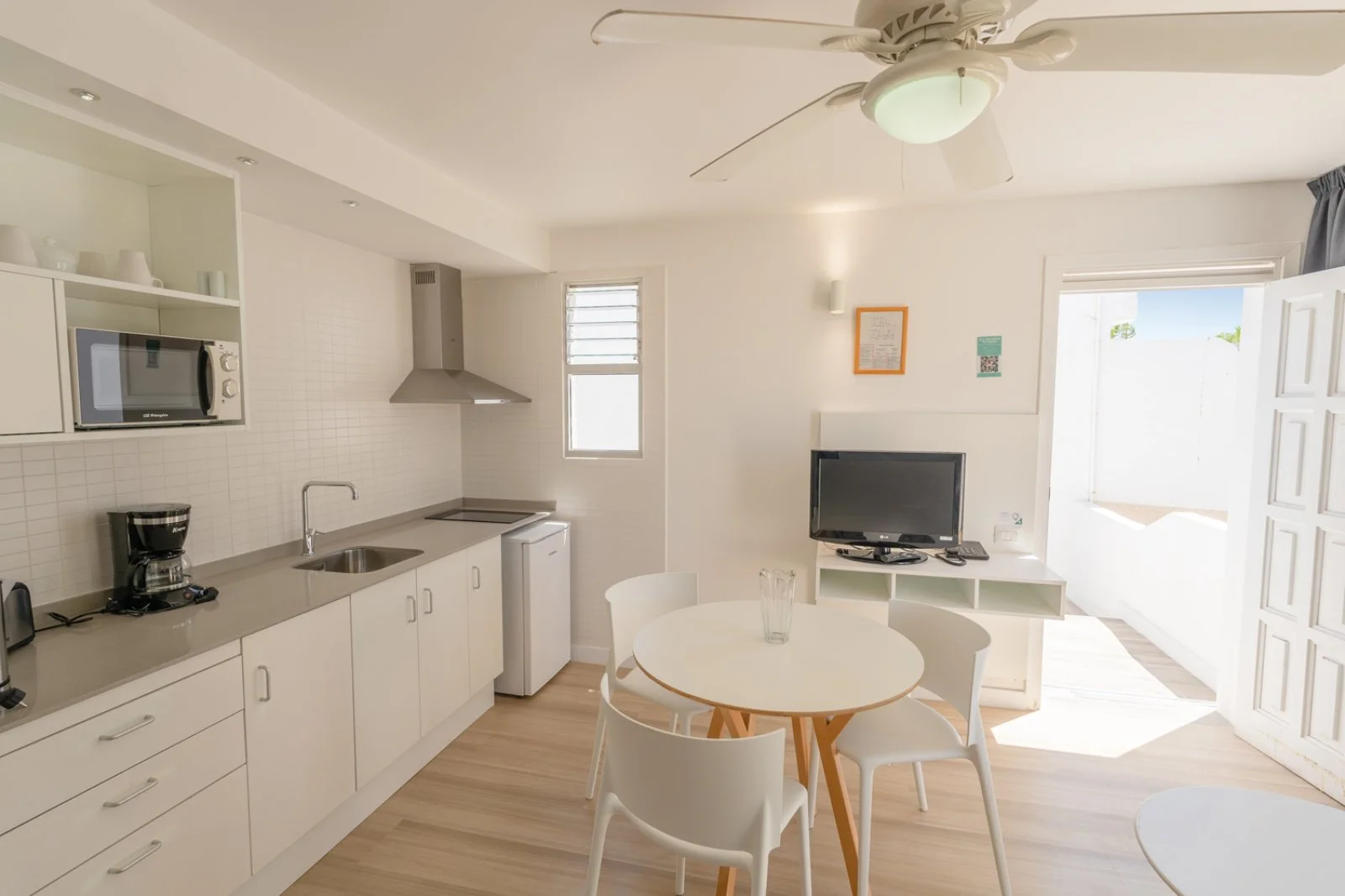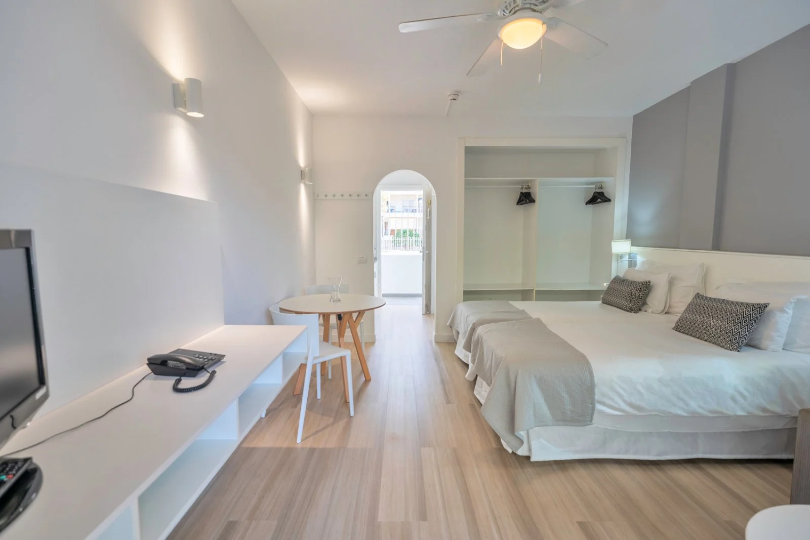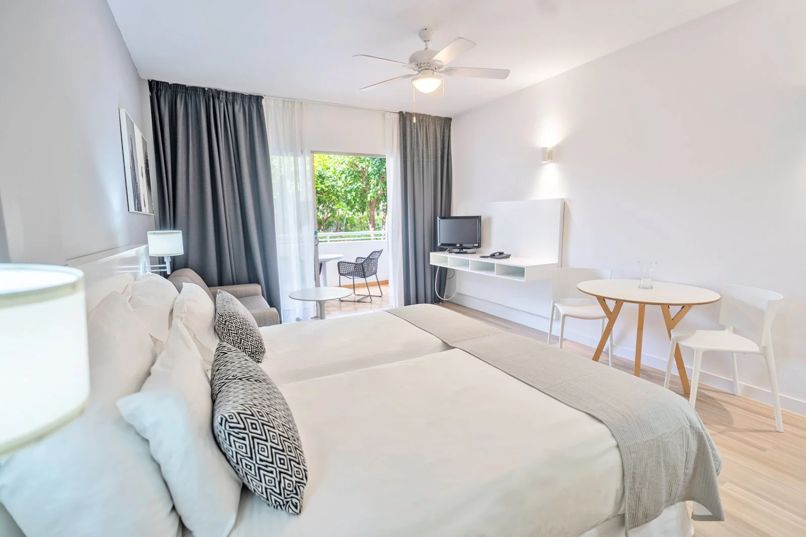 93 studio monolocali (39 m2), distribuiti su 5 piani, con terrazza o balcone, servizi privati, asciugacapelli, angolo cottura con minifrigo, ventilatore a soffitto, telefono con linea diretta esterna, Tv satellitare e connessione wifi gratuita. A pagamento, cassetta di sicurezza. Cambio lenzuola 2 volte a settimana e asciugamani 3 volte a settimana. Disponibili, con supplemento, studio vista piscina e vista mare e appartamenti bilocali standard o con giardino privato.