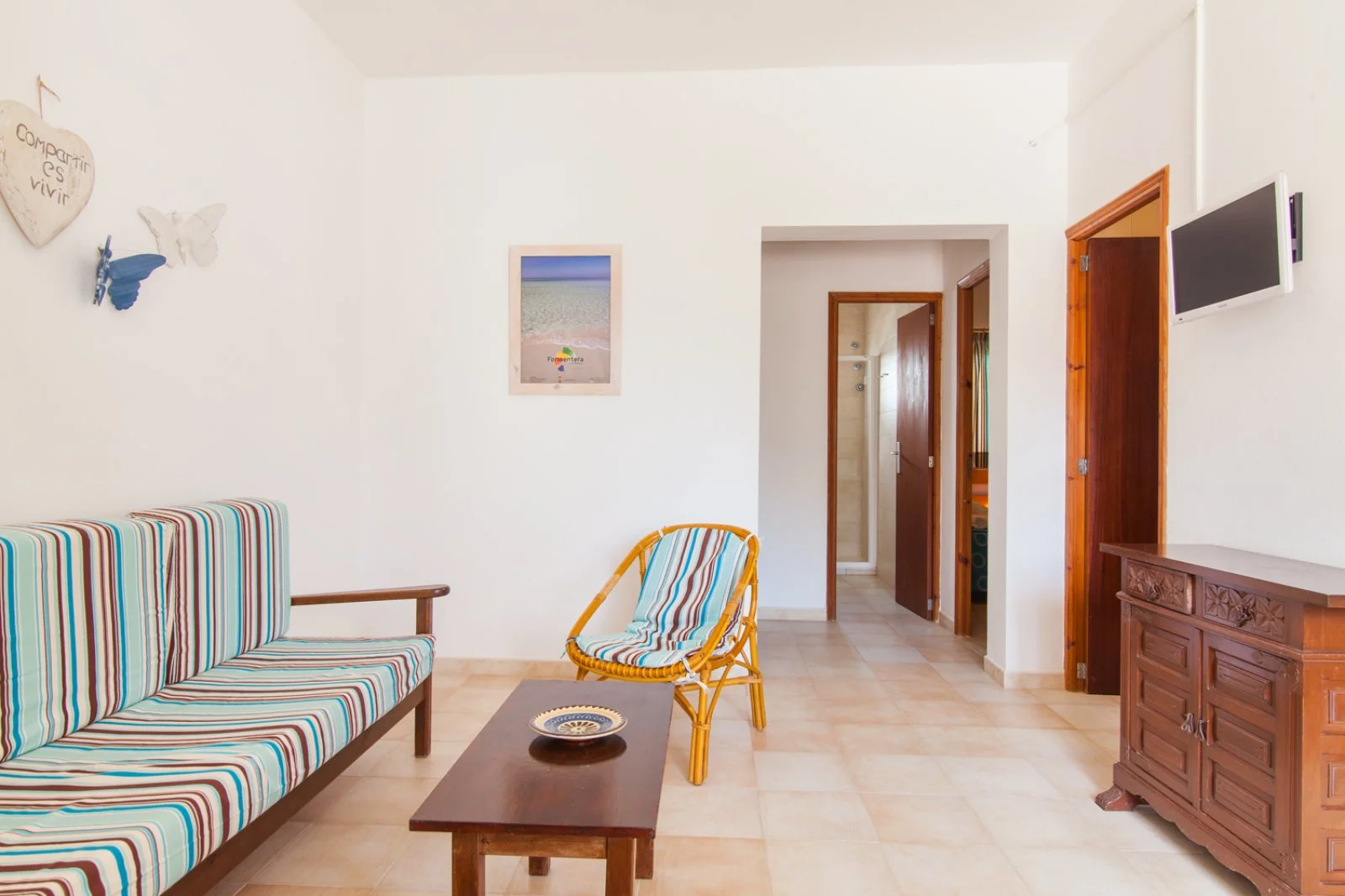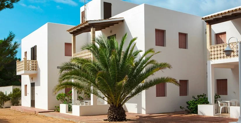 Si tratta di appartamenti semplici ma molto accoglienti e ben tenuti, ricavati all’interno di un complesso di case costruite in stile locale, a pochi passi dalla bellissima e incontaminata spiaggia bianca di Ses Platgetes, dall’aspetto quasi caraibico.