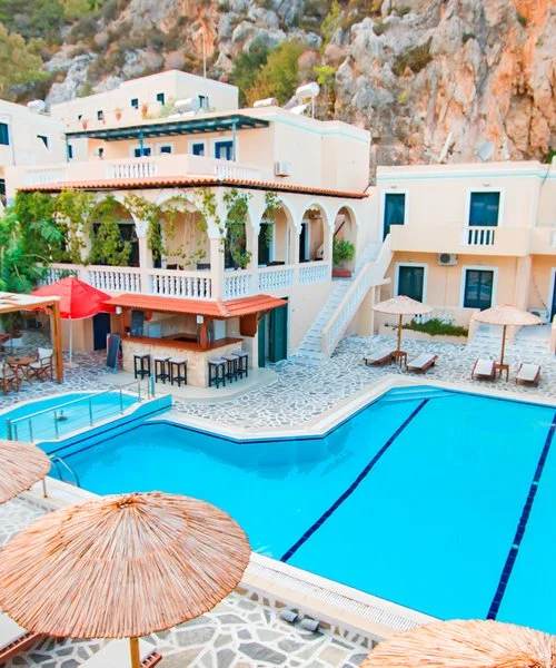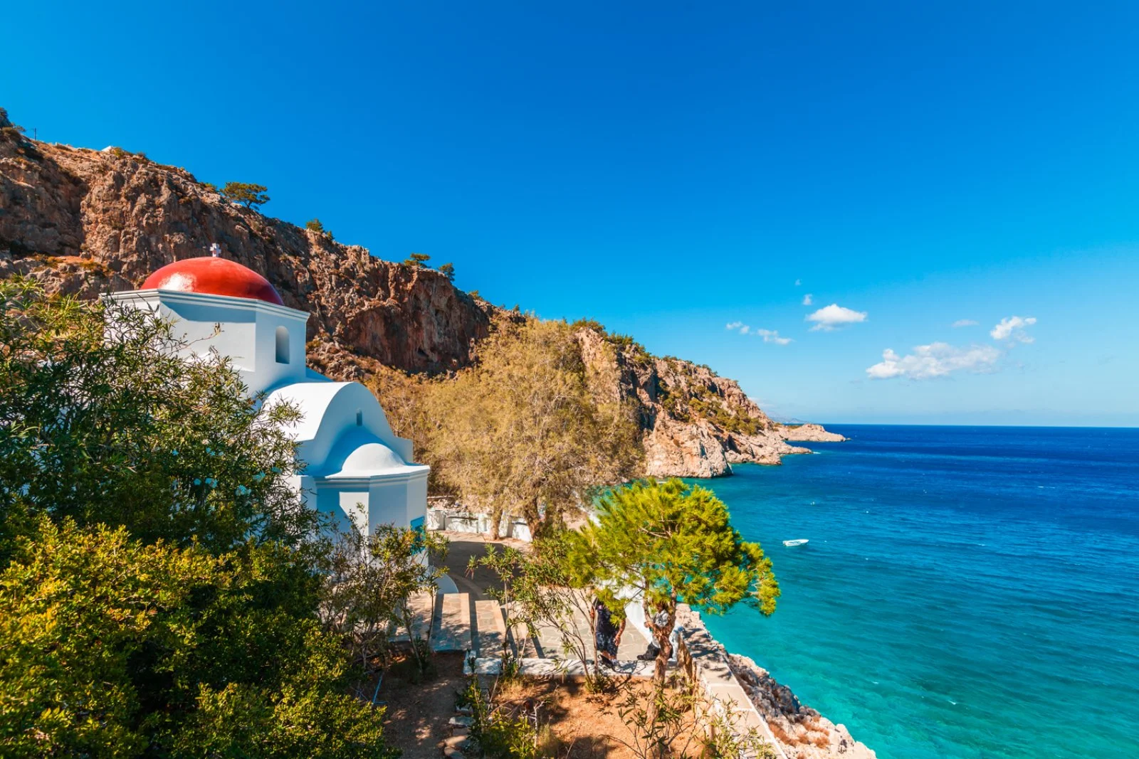 una delle zone più esclusive ed eleganti dell’isola. Kyra Panagia è, infatti, la località preferita per le residenze private estive, mentre le sistemazioni turistiche sono ancora poche (e per pochi!). Questo complesso spicca, quindi, come l’ideale per chi desidera trascorrere una vacanza rilassante in un ambiente davvero suggestivo, grazie anche alla vicinanza di una delle spiagge più belle dell’isola. Si tratta di un’insenatura favolosa compresa tra il colore blu intenso del mare e il bianco della piccola chiesetta che la sovrasta e il rosso della sua cupola. Cartolina tipica di Karpathos!