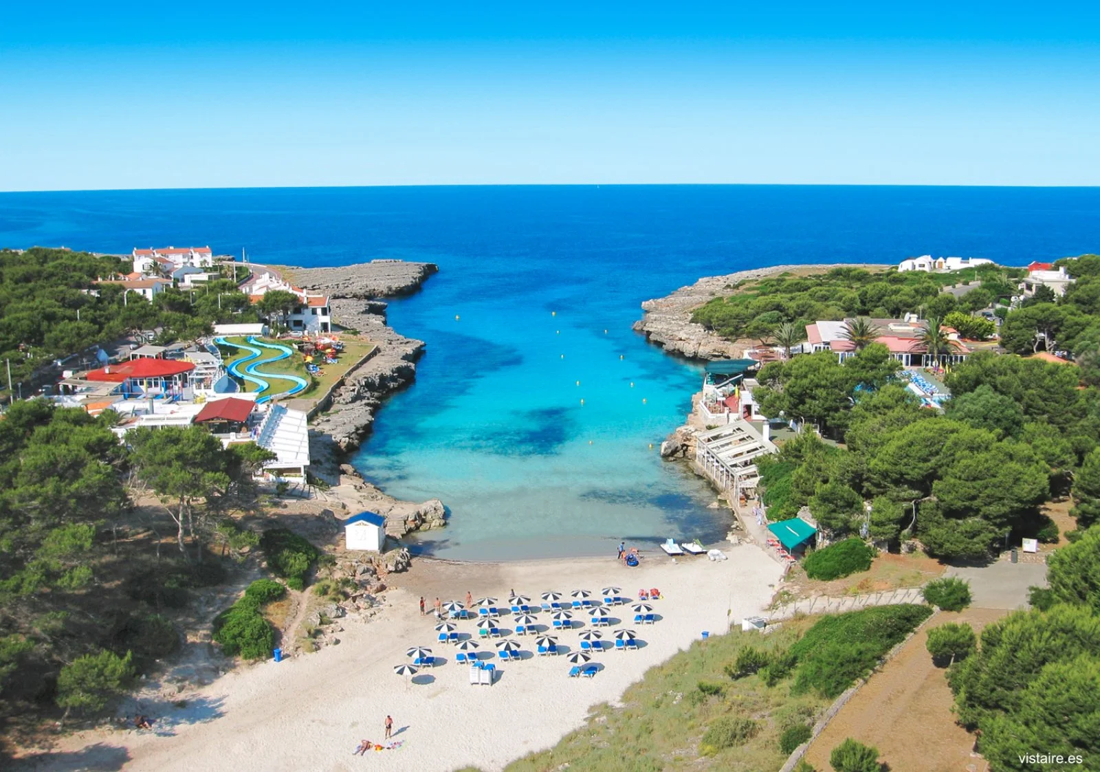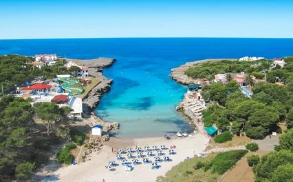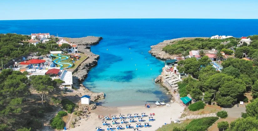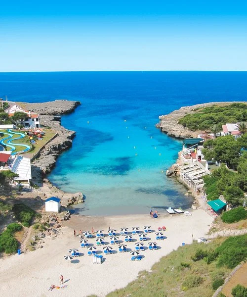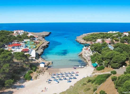 profonda insenatura di sabbia bianca e fine che si insinua fra due ali di roccia, con acqua calma e cristallina dal colore azzurro intenso. La struttura costituisce un‘ottima base d’appoggio da cui partire alla scoperta dell’isola e delle sue meravigliose spiagge incontaminate. Da segnalare la vicinanza a Ciudadela, l’antica capitale dell’isola, dove trovare ottimi ristoranti di pesce, bar e locali davvero caratteristici. Il “casco antiguo” di questa cittadina medioevale perfettamente conservata offre scorci davvero suggestivi, soprattutto la sera, grazie alle viuzze strette e la luce calda e fioca dei lampioni che illumina gli antichi palazzi in pietra, assolutamente imperdibile!