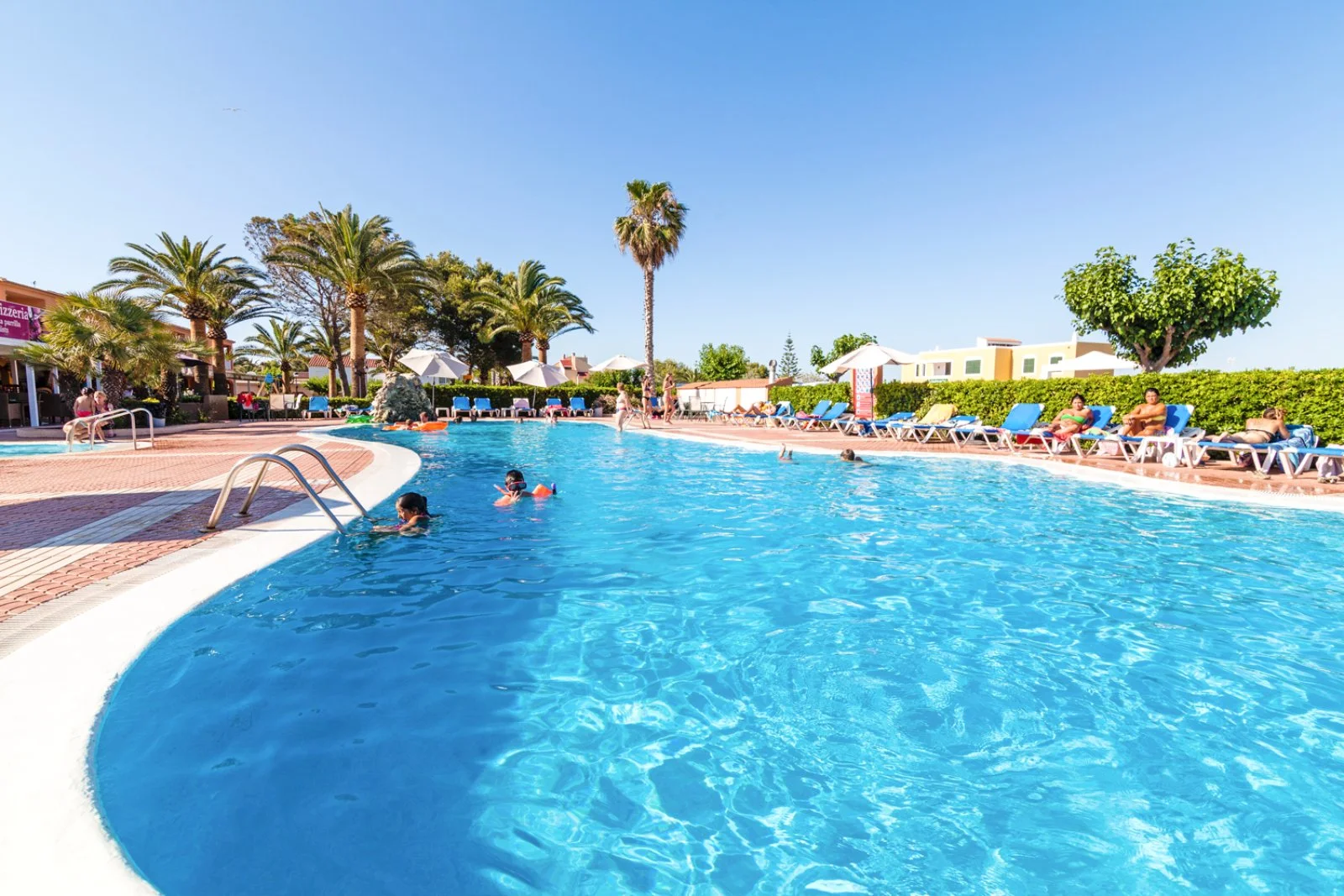 curati e funzionali, ben attrezzati e molto spaziosi, ideali anche per gruppi di amici che vogliono condividere la loro vacanza data la capacità dei quadrilocali di ospitare fino a 7 adulti! Ci troviamo a Cala Blanca, piccola e tranquilla località turistica nei pressi di Ciudadela, con alcuni bar, ristorantini e negozi situati proprio a pochi passi dalla struttura.