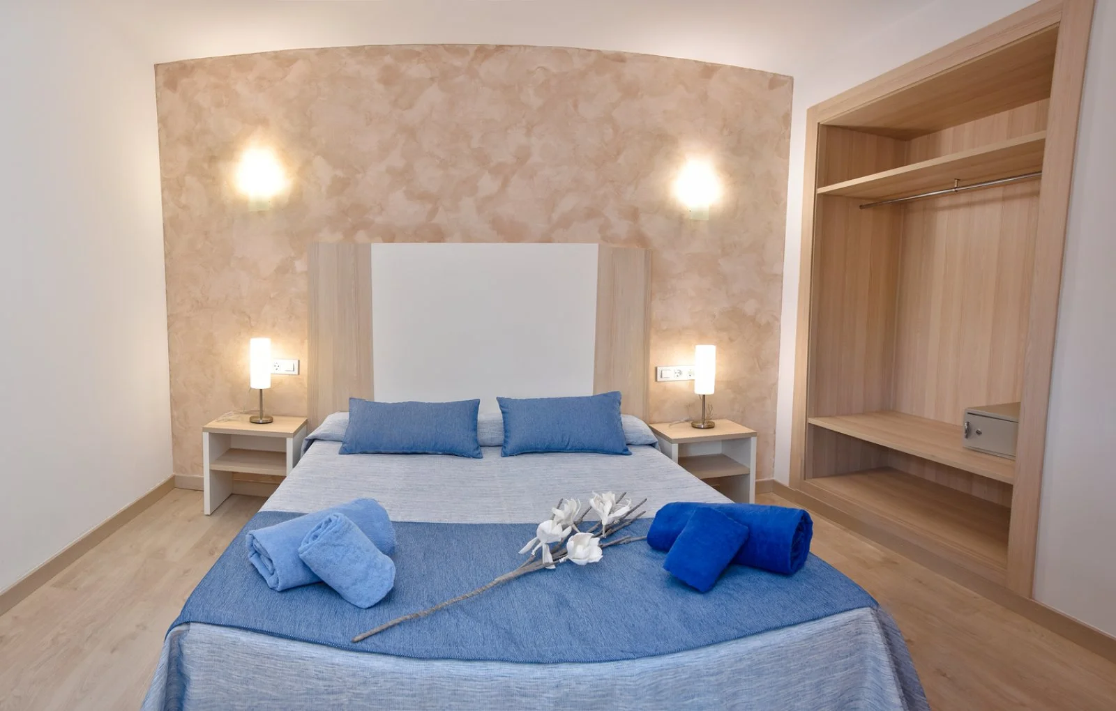 54 appartamenti distribuiti su diversi edifici di 2 piani e suddivisi in bilocali (45 m2, max 3 adulti) con 1 camera da letto, trilocali (55 m2, max 5 adulti) con 2 camere da letto e quadrilocali (65 m2, max 7 adulti) con 3 camere da letto, tutte con zona giorno con divano letto e ampia cucina attrezzata, frigo, tv satellitare, aria condizionata, servizi privati, asciugacapelli, terrazza o balcone e connessione wi-fi gratuita. A pagamento, cassetta di sicurezza. Cambio lenzuola una volta a settimana e cambio asciugamani due volte a settimana.