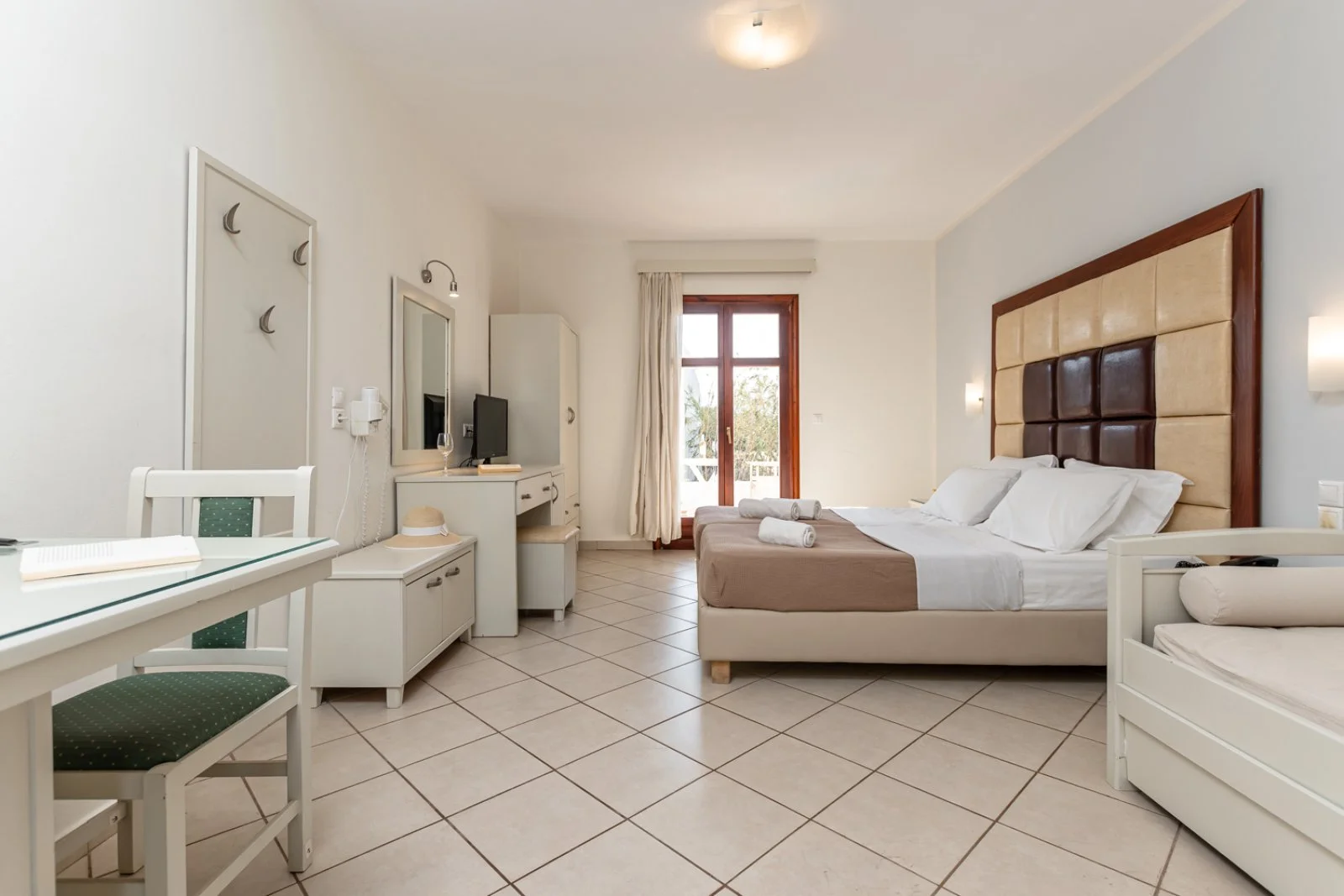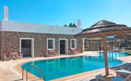 situato a ridosso dalla bellissima e omonima spiaggia, lunga e di sabbia fine, con spettacolari dune che la rendono una delle più selvagge e naturali di tutta l’isola. Un vero angolo di pace, tranquillità e bellezza! Dispone di sistemazioni funzionali e gradevoli che possono ospitare fino a 4 occupanti adulti e una graziosa area piscina, seppur paradossalmente risulti un servizio quasi sovrabbondante data la location! Ai vagabondi Eden suggerisce di noleggiare un’auto e percorrere le strade costiere del sud, deserte e dai panorami suggestivi, fino ad addentrarvi nei villaggi dell’entroterra, per un assaggio di una Grecia ferma nel tempo. Quando sarete stanchi fermatevi a riprendere fiato nelle altre splendide spiagge, tra cui Vigla, paradiso del kite-surf, e Mikri Vigla, perfetta per gli amanti di relax, sole e mare.