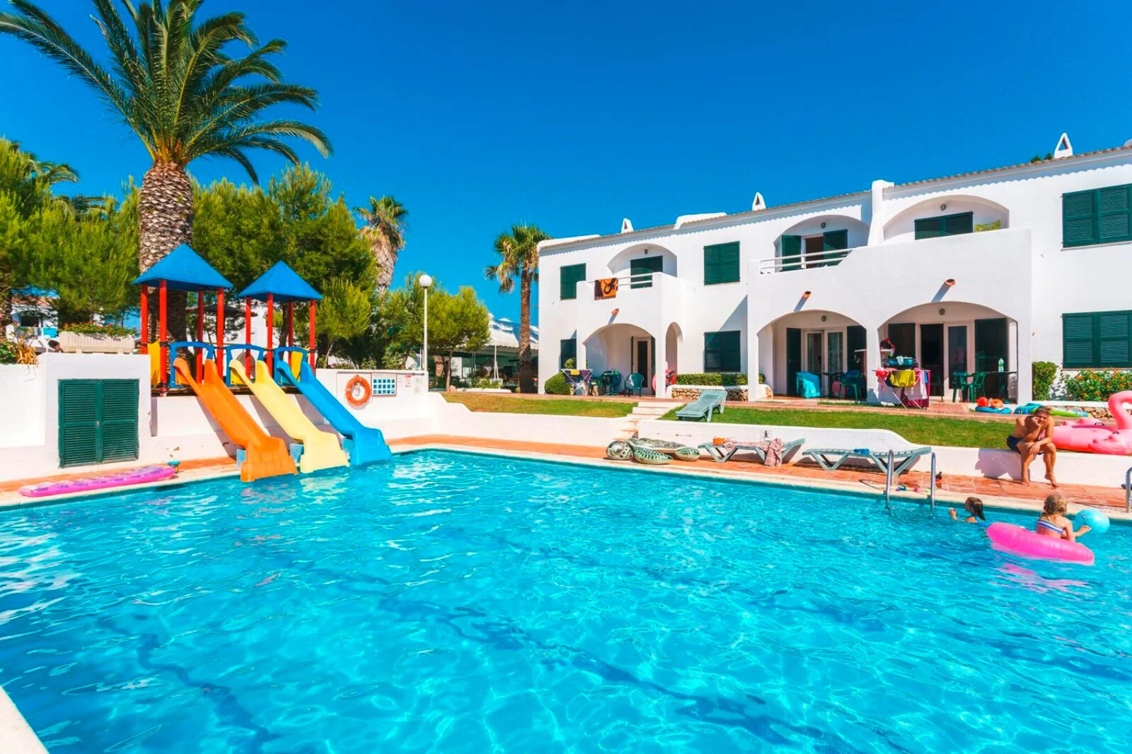 Arenal d’en Castell, quasi completamente chiusa da due promontori rocciosi che formano un’immensa piscina naturale. Il complesso è pensato per una vacanza all’insegna del più