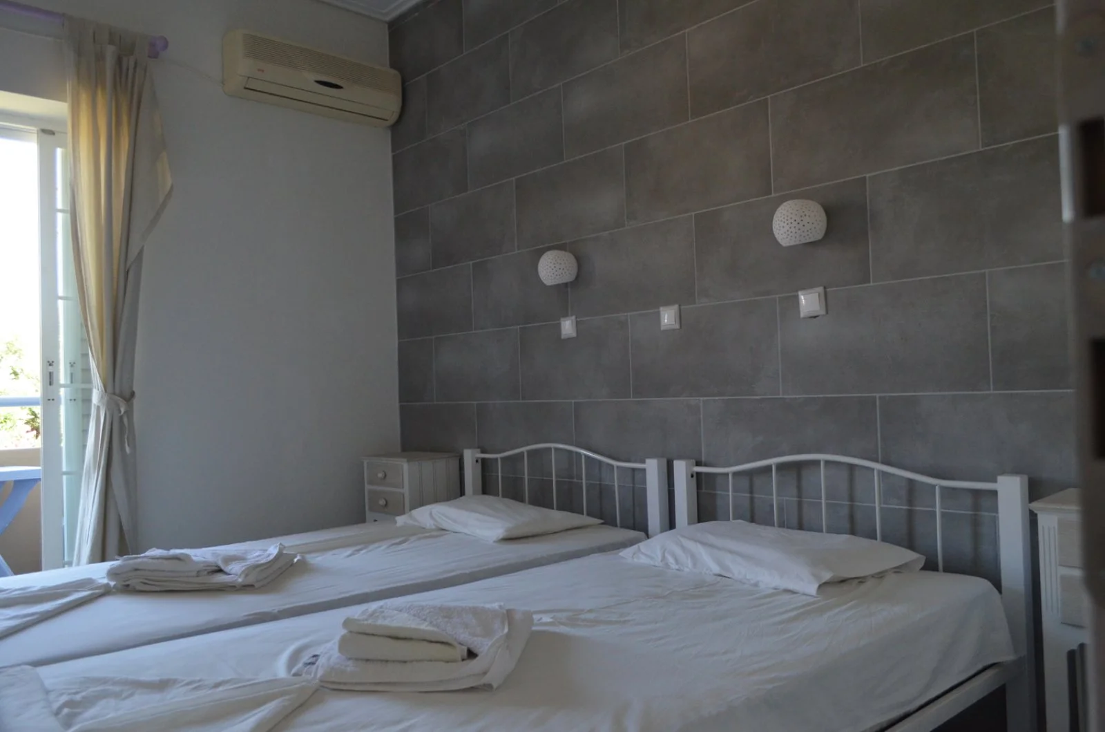 17 studio (25 m2) disposte su 2 piani con servizi privati, asciugacapelli, connessione Wi-Fi, minifrigo, angolo cottura attrezzato e terrazza o balcone. A pagamento, aria condizionata e cassetta di sicurezza. Gli studio standard sono tutti al piano terra, mentre quelli superior, disponibili con supplemento, possono essere sia al piano terra che al piano superiore. Cambio lenzuola 2 volte a settimana, cambio asciugamani 3 volte a settimana.